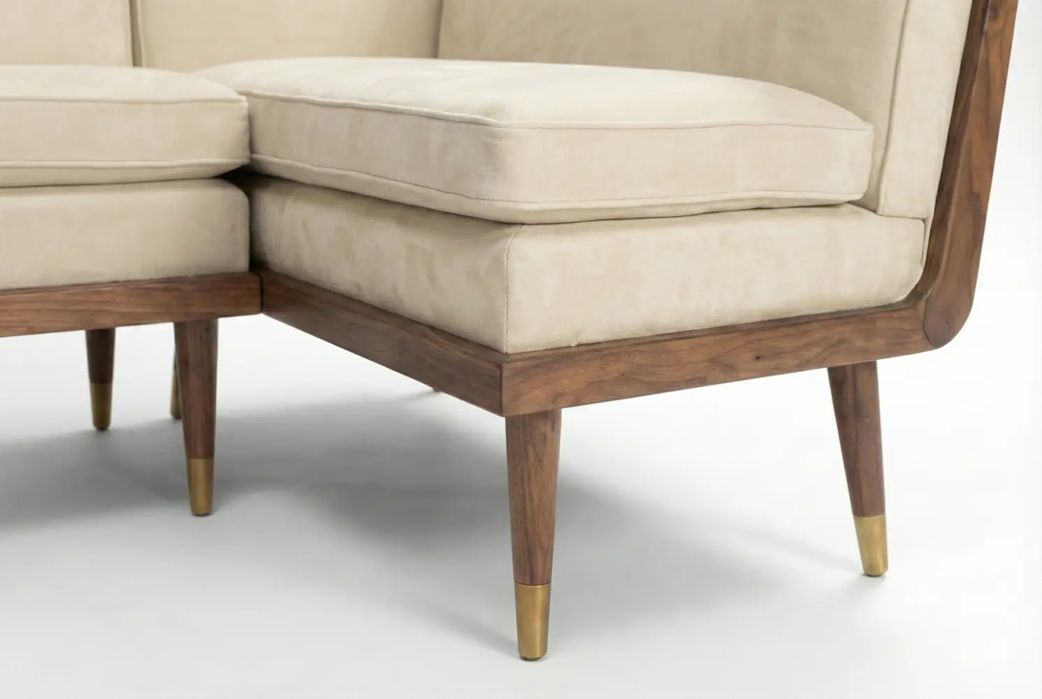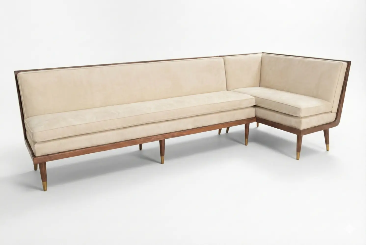 The Angolo Dining Banquette blends mid-century character with contemporary dining comfort, defined by its refined exposed wood frame, tapered legs, and elegant brass sabots. Its architectural base adds warmth and structure, while the tailored upholstered seating ensures comfort for everyday dining or hospitality settings. Designed to complement both residential and commercial interiors, the Angolo delivers a balanced combination of style, durability, and functionality.