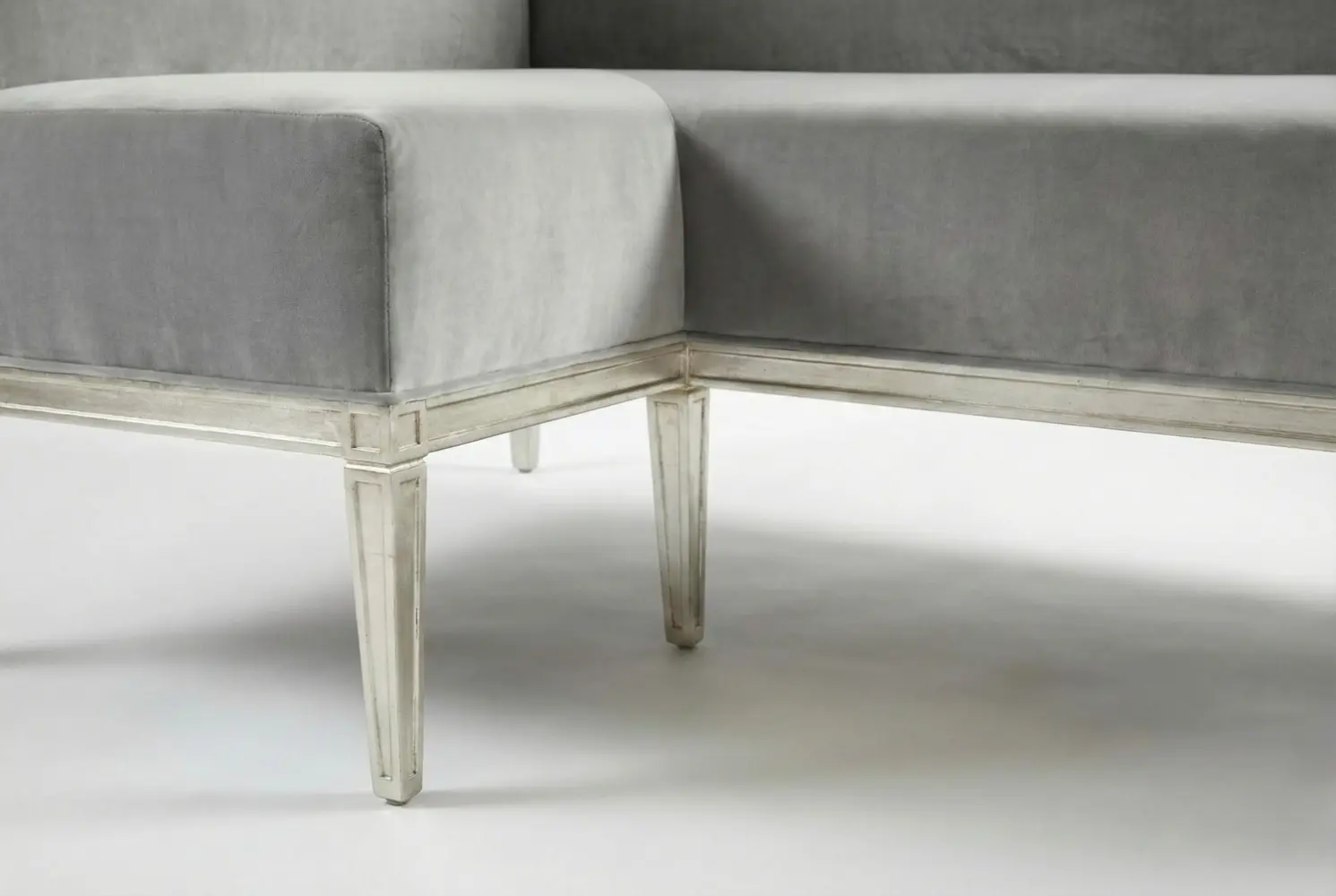 Fully customizable, the Bayeux allows selection of wood species such as rift oak or walnut, hand-applied finishes including silver leaf, and a range of base options—from minimalist legs to integrated plinth lighting. Upholstery can be specified in smooth velvets, channel tufting, or via our C.O.M. (Customer’s Own Material) program for a truly personalized result. Every detail is engineered to order, producing a timeless piece that harmonizes perfectly with your design vision.