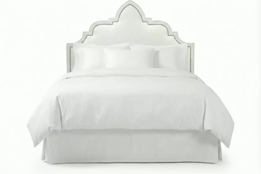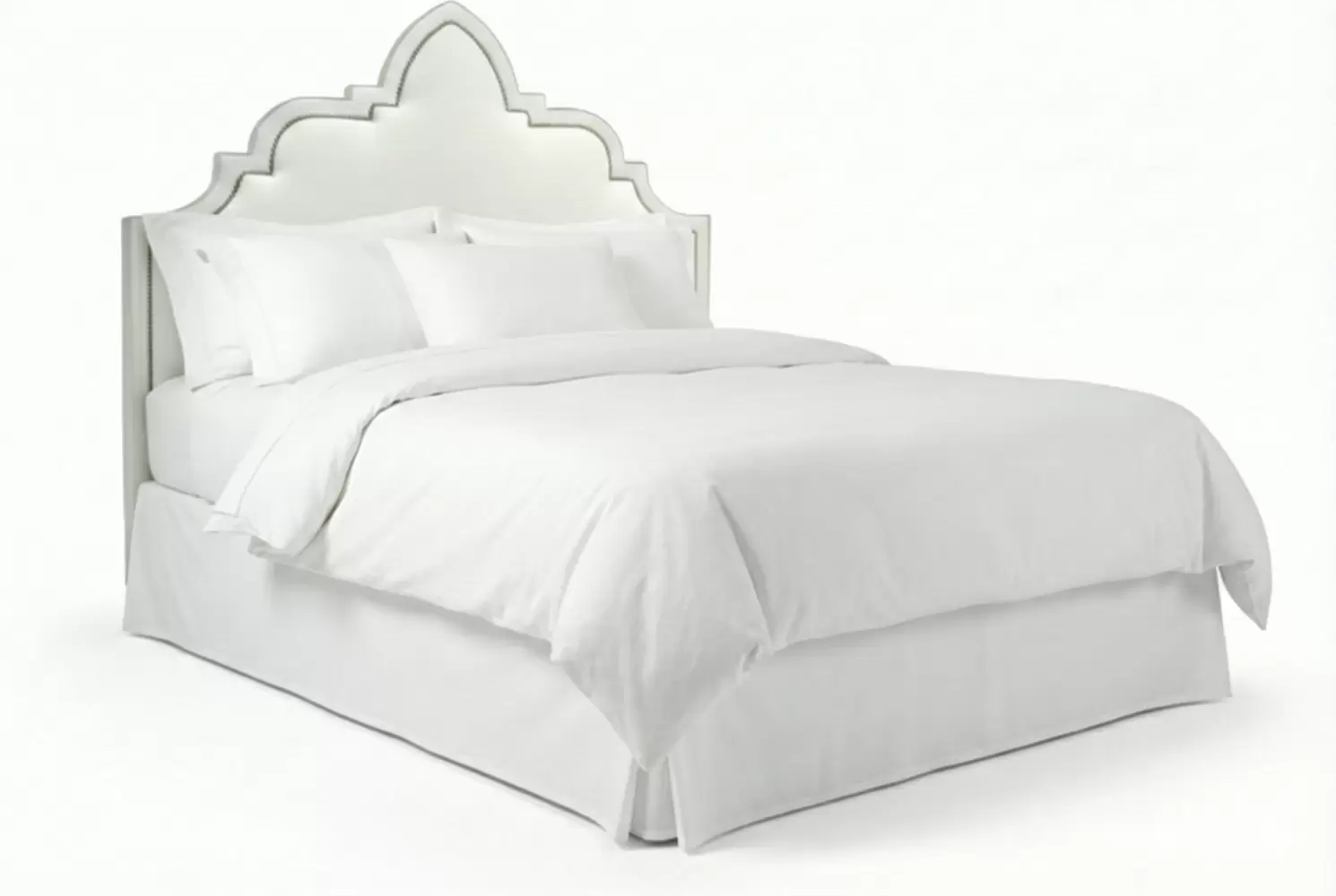 The Baruch Bed transforms a bedroom into a refined sanctuary, combining bold wood structure with tailored upholstered details for dramatic impact. Its sculptural headboard and frame create an architectural silhouette — ideal for spaces where the bed is a focal design element.