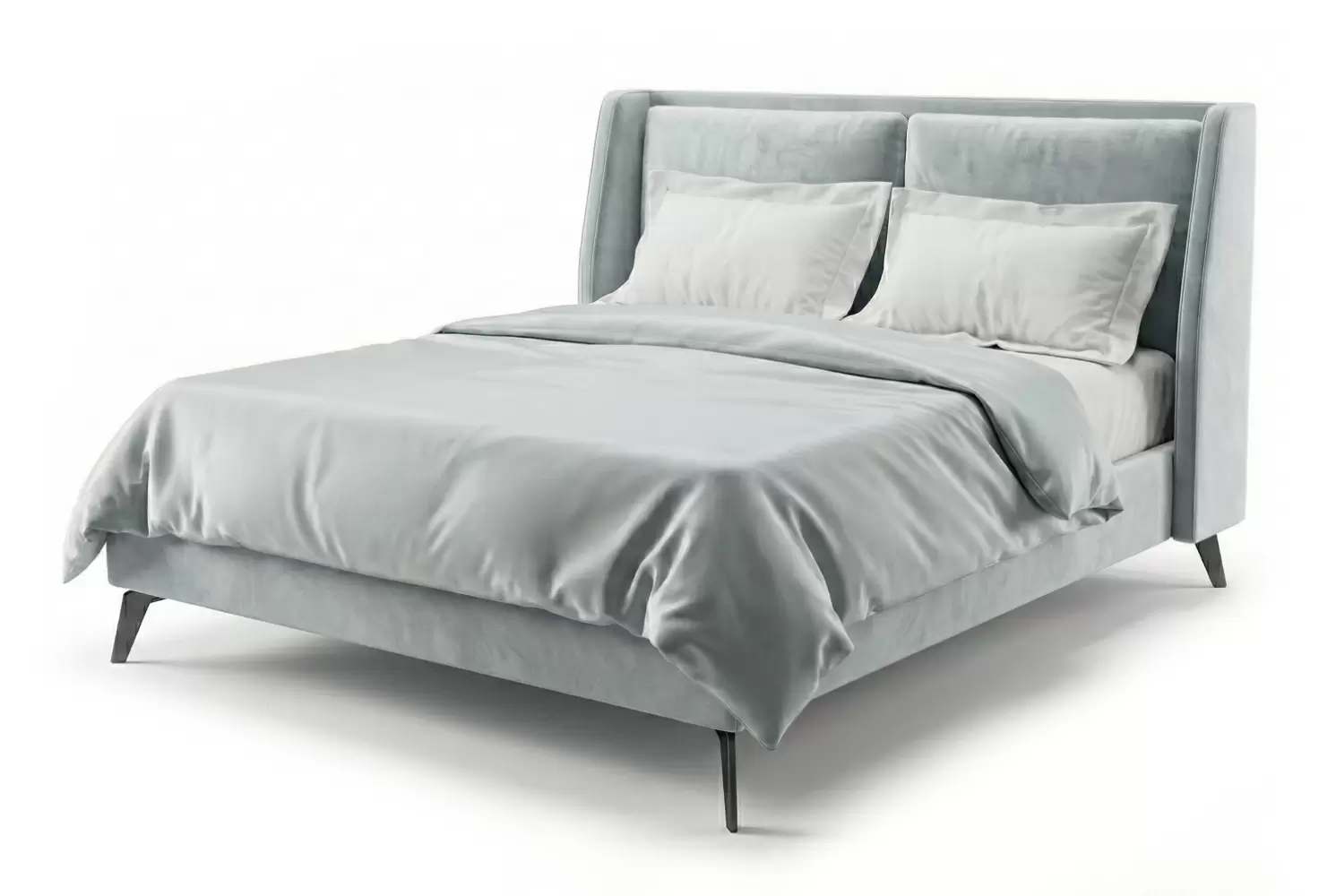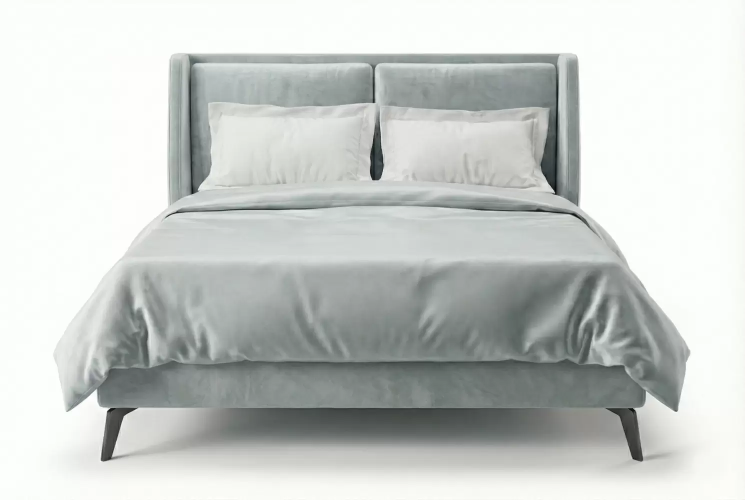 Exuding refined contemporary elegance, the Downtown Bed is defined by a bold, architectural silhouette that anchors modern bedroom interiors. Its 50-inch high upholstered headboard creates a striking focal point, while sleek solid steel legs — shown in blackened steel and available in a range of premium finishes — add contrast and sophistication.
