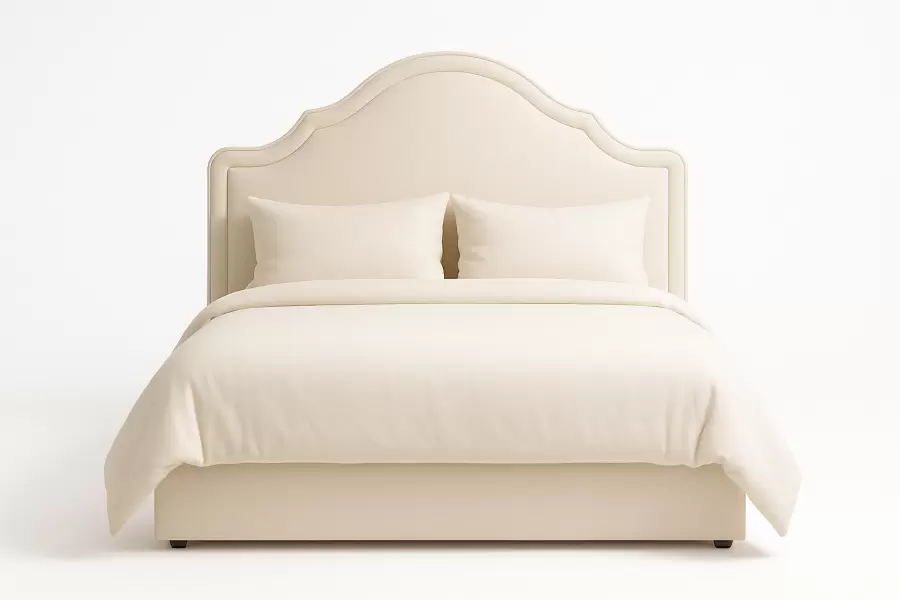 Evoking timeless elegance, the Margaux Bed features a 68-inch high arched headboard with a refined serpentine profile, creating a sophisticated focal point in any bedroom. Its classic lines are paired with a fully upholstered, low-profile frame for balanced proportions.