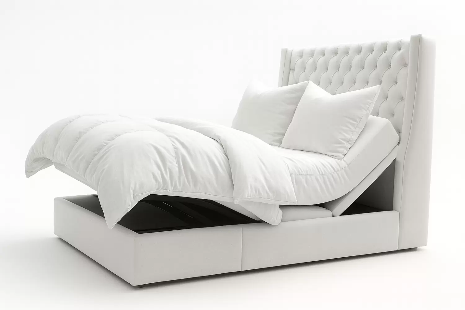 Designed for versatility, it is fully customizable in upholstery, finishes, and scale, and also available as an electric adjustable bed, offering adaptive comfort without compromising style. A statement piece that combines architectural presence with luxurious, designer-ready functionality.