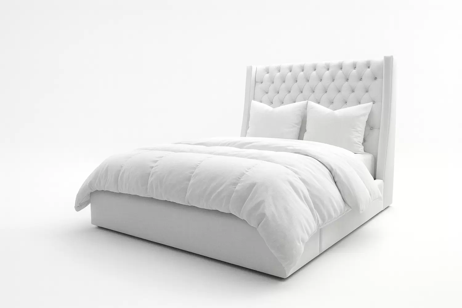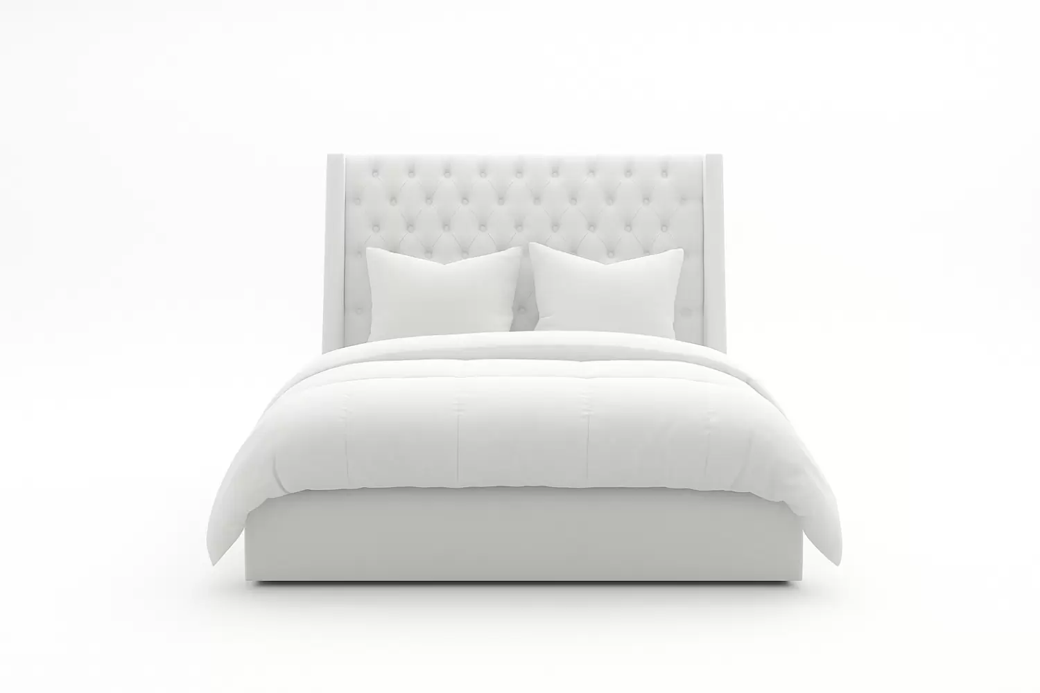 The Oliver Wing Bed commands attention with its high wingback headboard, enveloping wings, and refined diamond tufting that adds depth and sophistication. Its fully upholstered surround conceals the boxspring, creating a seamless, sculptural silhouette that anchors master suites or boutique guest rooms.