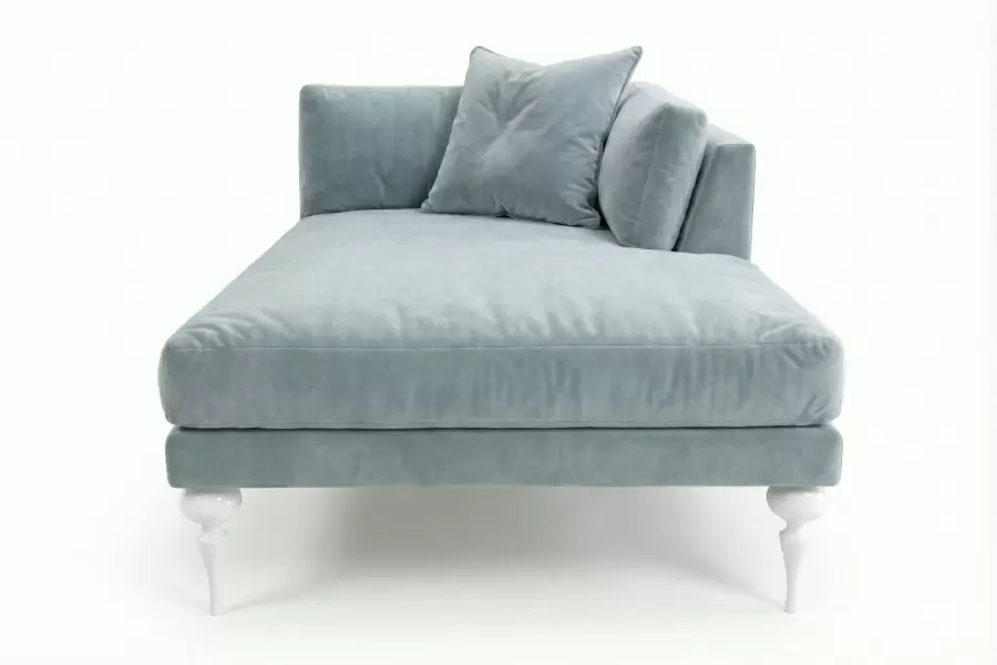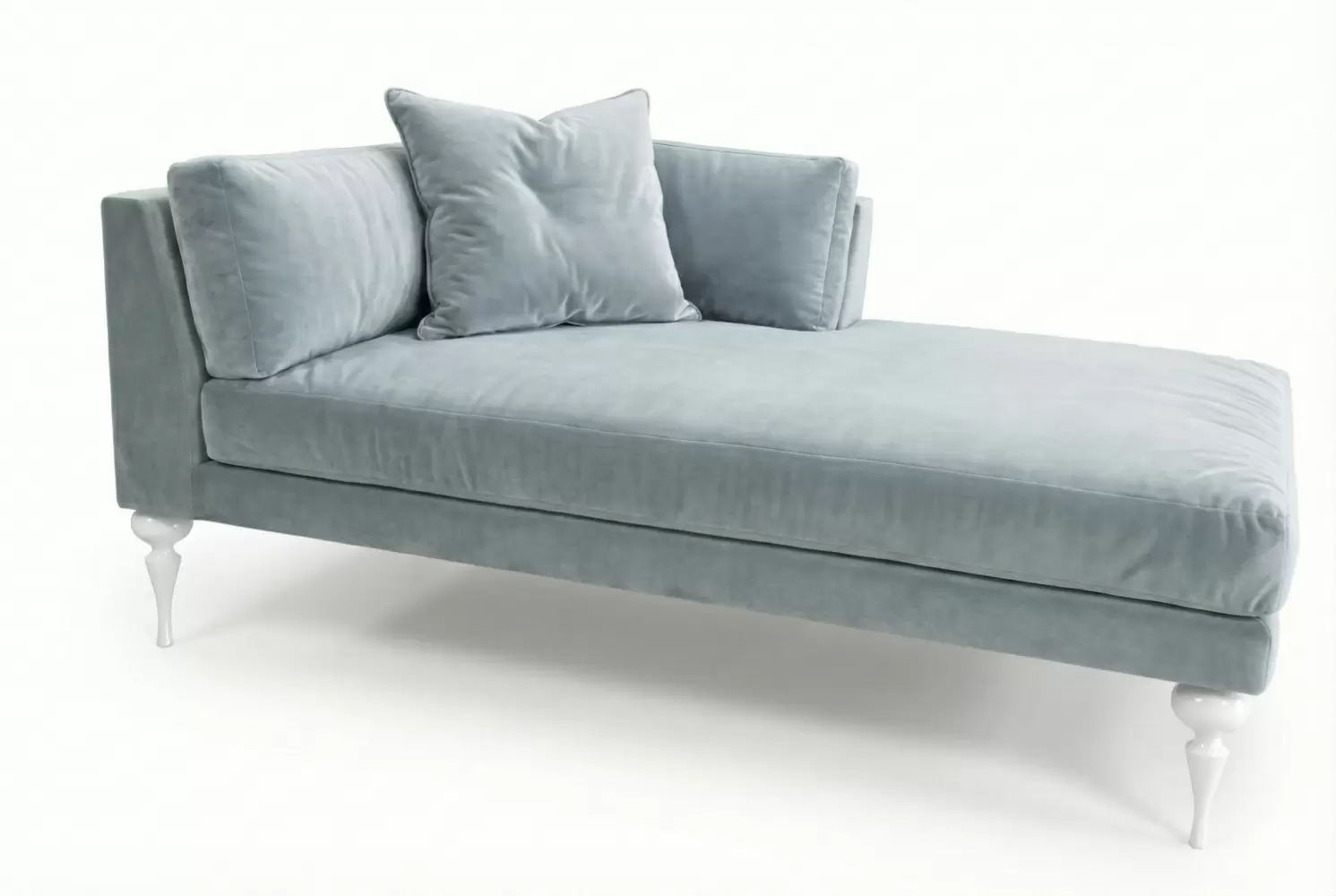 Sheer delight and arousing admiration are assured with the elegant Maiden Chaise. Sitting atop four delicate spindle legs, it is guaranteed to enchant any room. All design elements are custom made.