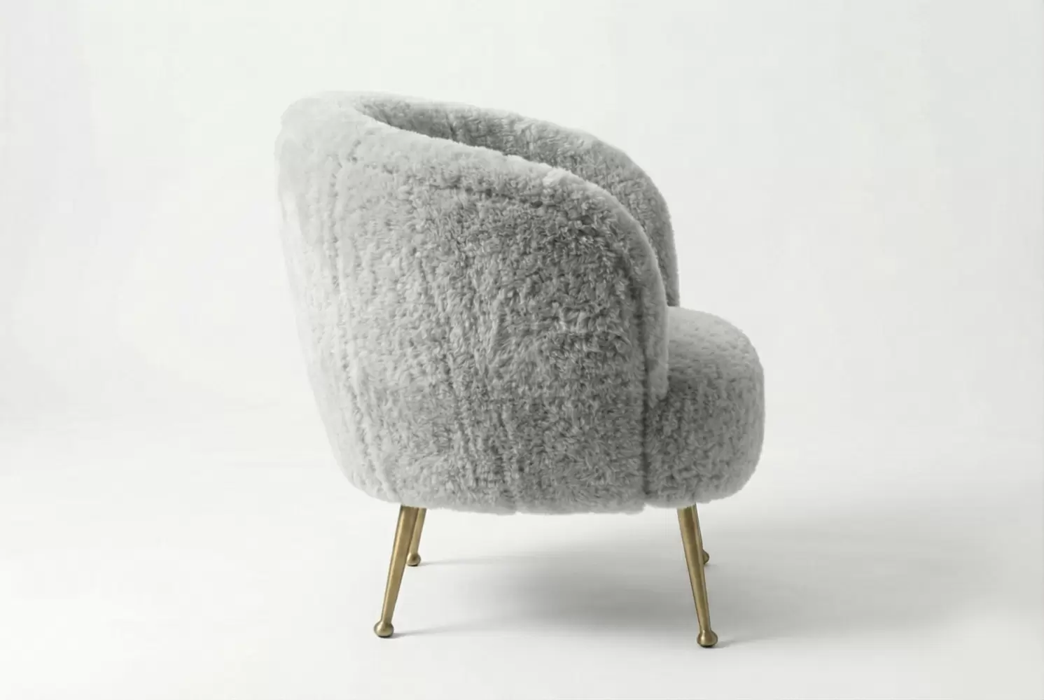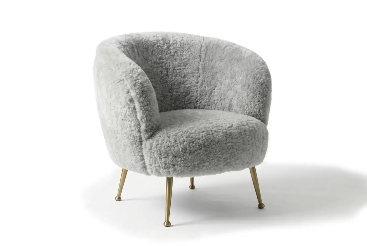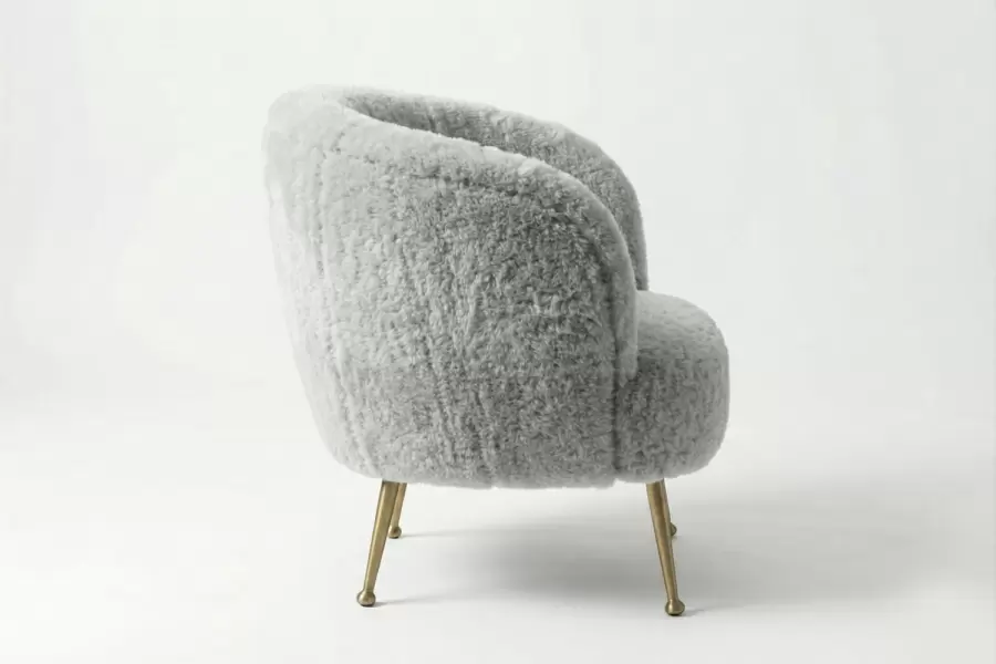 Inspired by the 1960's Hollywood glamor and designed for intimate conversation or casual entertaining, the Bailey Tub Chair is a tightly upholstered curved tub chair with tapered brass legs. A perfect addition to any mid-century modern or contemporary-inspired interior setting. All metal components can be customized.
