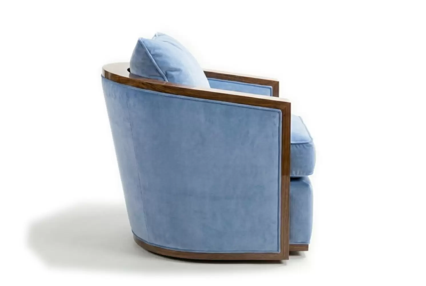 The Felix Club Chair blends sculptural elegance with tailored upholstery, featuring a curved back that contrasts beautifully with its clean, geometric lines. A sleek, durable wood frame adds depth to modern and contemporary interiors, while every detail—from dimensions to finishes — is fully customizable.