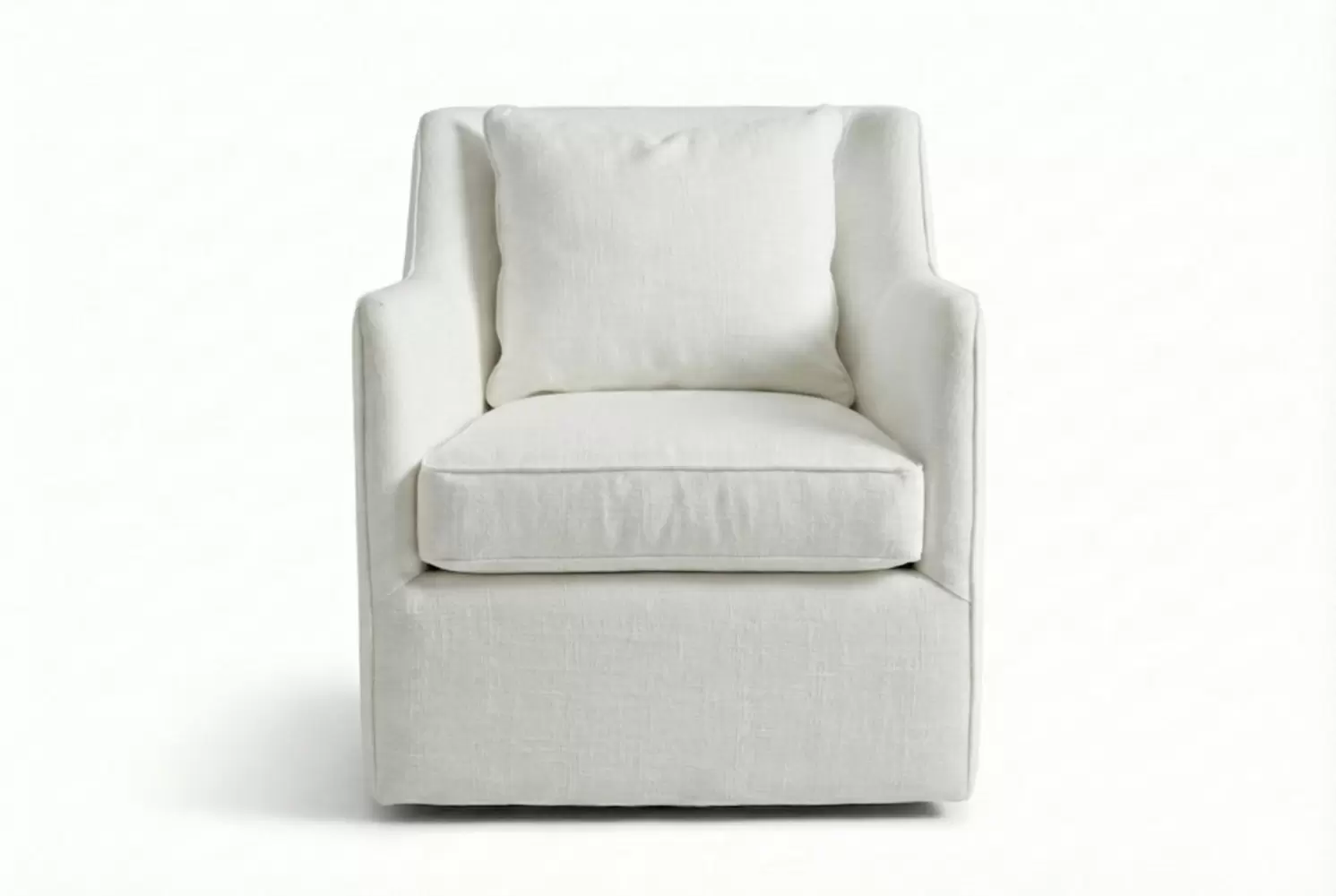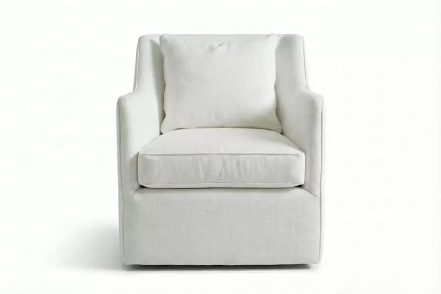 Perfect for the bedroom or living room, The McDougal Tub Chair features a swivel base, slender arms and an upholstered seat cushion. Suitable for both traditional and contemporary interiors. All design elements are custom made.