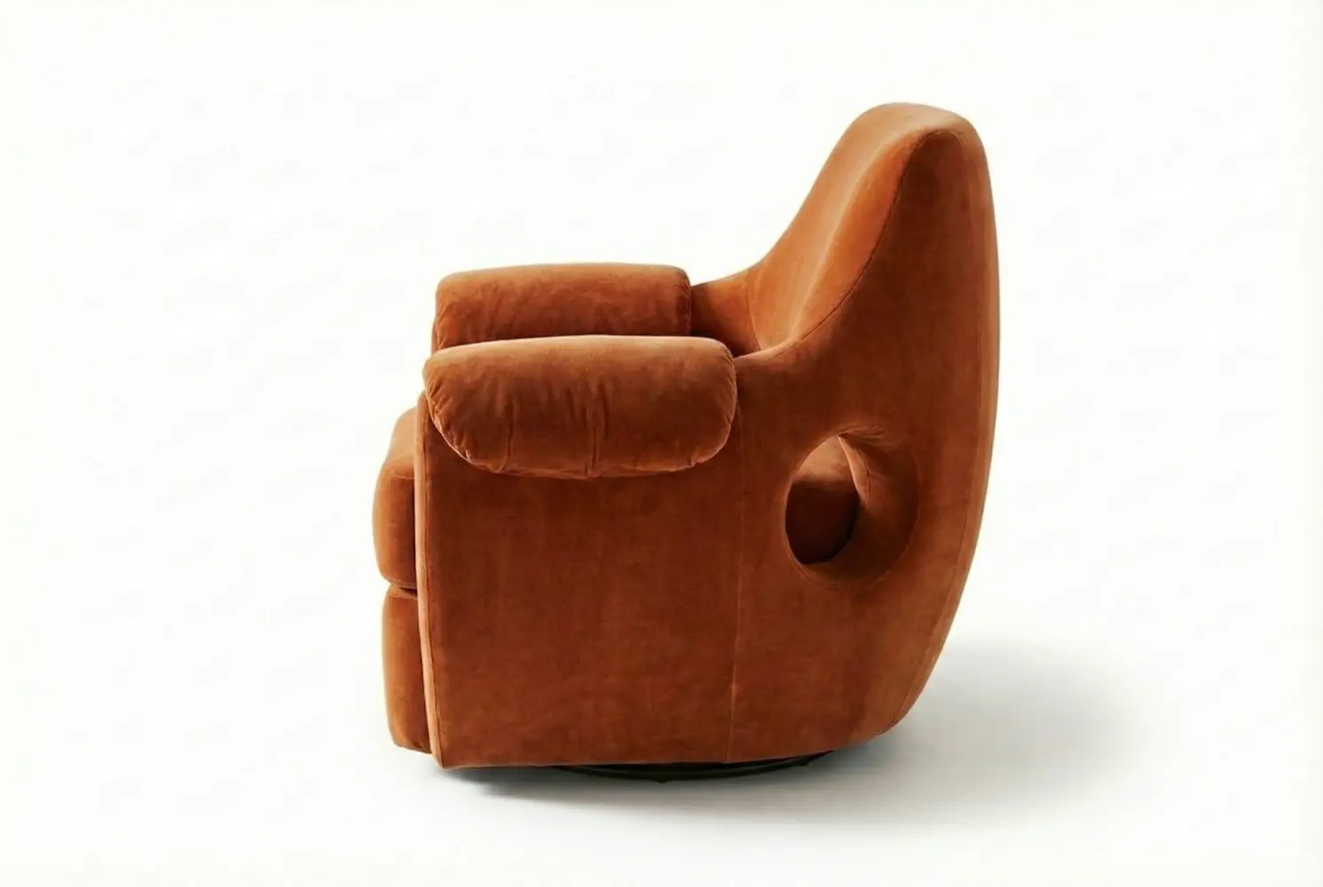 Meet the Spello chair, an inviting club chair that harmonizes retro curves with modern comfort. Its subtly concealed swivel base allows effortless movement while preserving a sleek, sculptural silhouette, making it ideal for living rooms, lounges, and sophisticated seating areas.