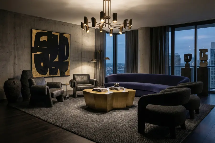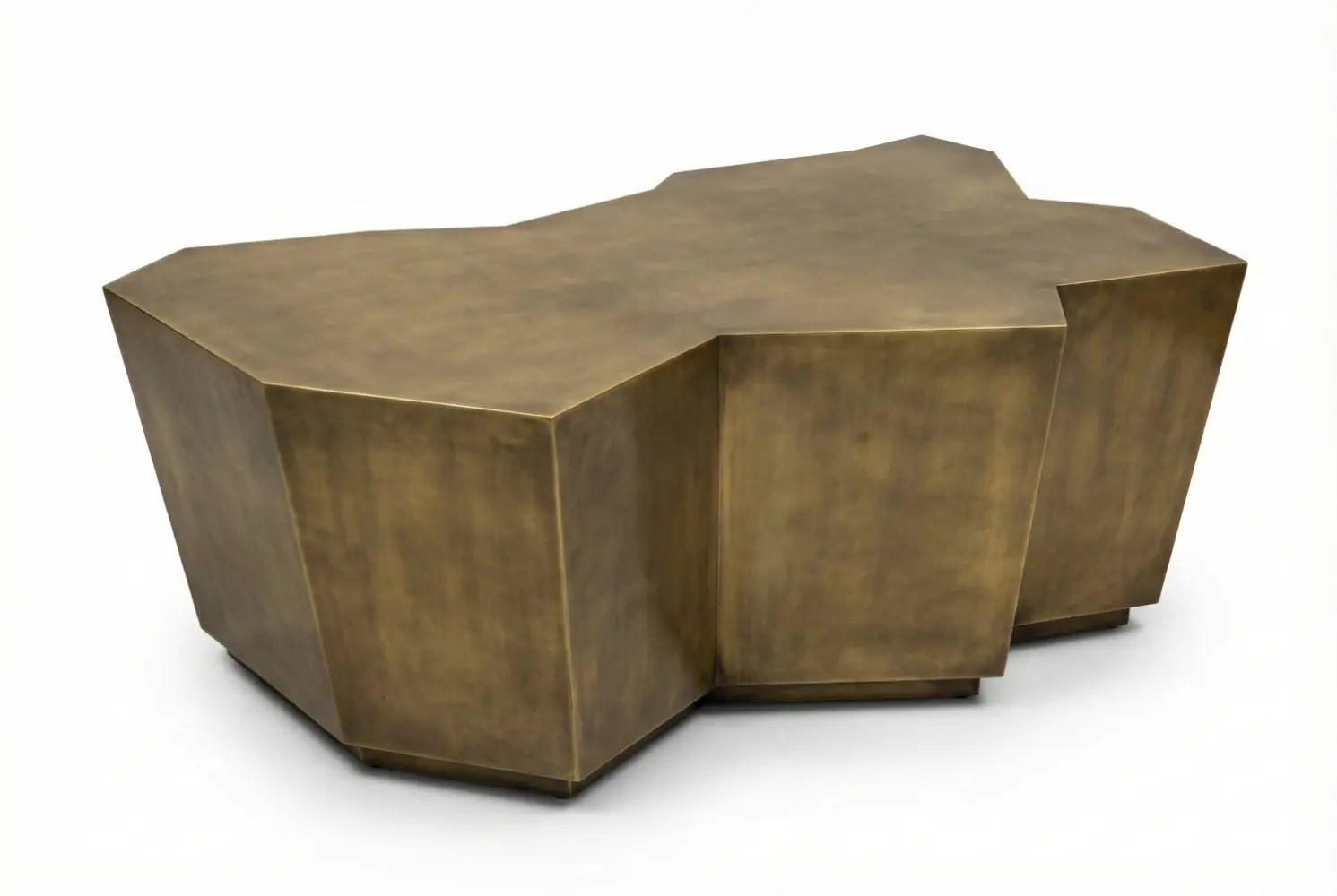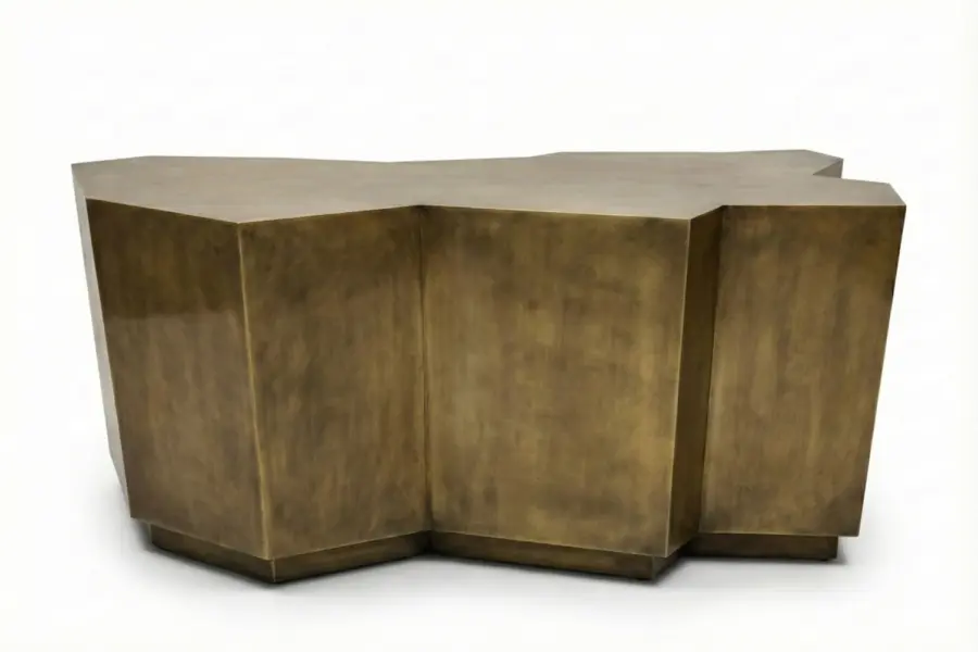 Shown in an elegant antique brass finish that accentuates its multi-planar form, the Edge may be specified in a range of custom metal patinas and finishes. The result is a commanding yet refined cocktail table that balances structural artistry with everyday functionality.