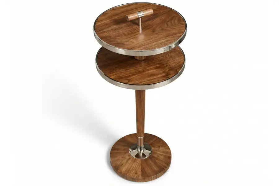 Accented with brass detailing, the table juxtaposes warmth and precision, striking a balance between elegance and graphic presence. Fully customizable in dimensions and wood components — available in any finish — the Myrtle adapts to bespoke design schemes with tailored proportions and thoughtful craftsmanship, making it an elevated accent for curated spaces.
