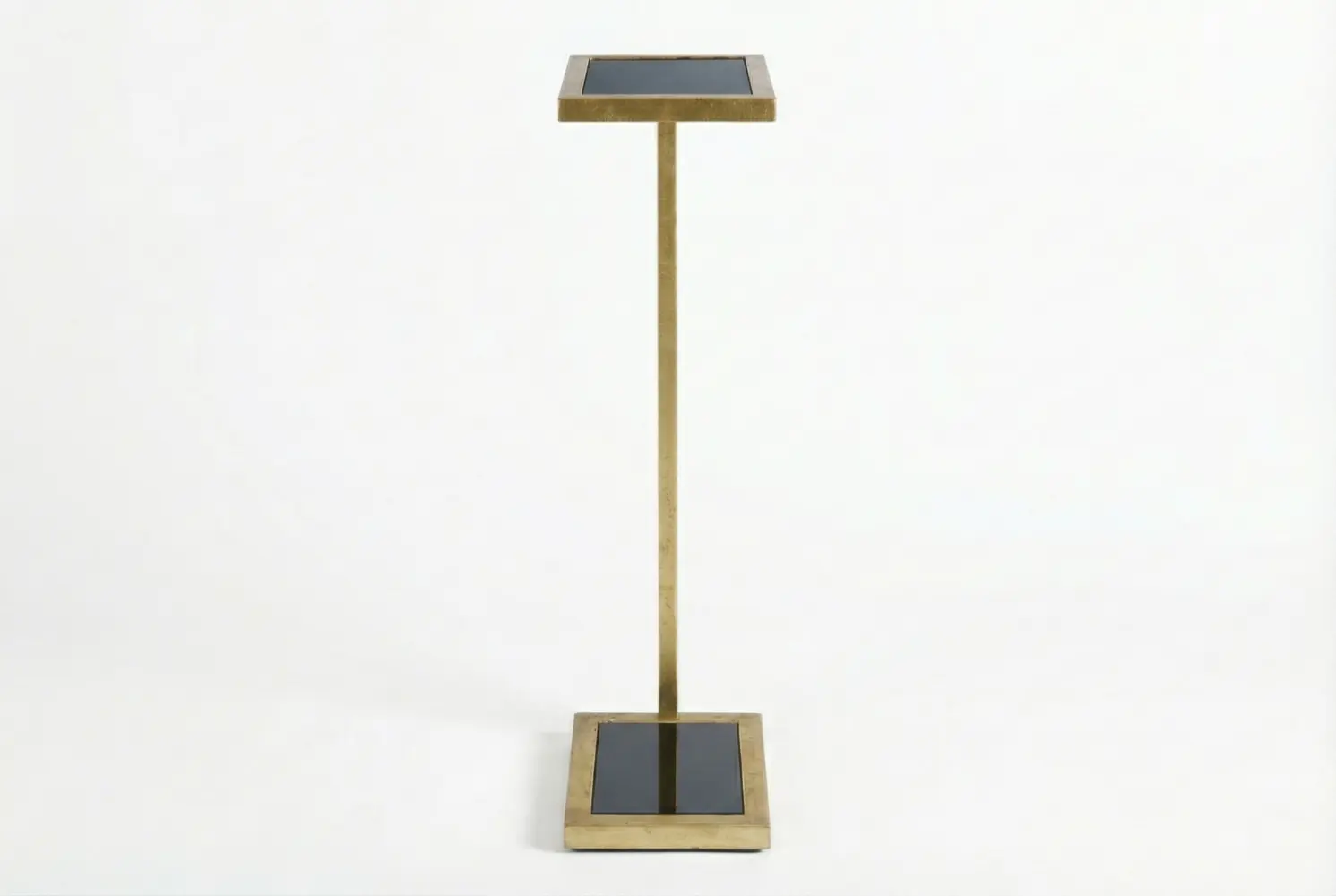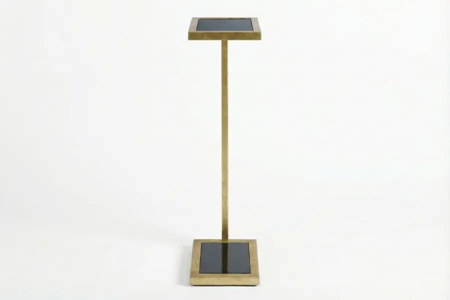 Beautifully compact and versatile, the Potter Sofa Table blends refined materials with purposeful form. Its sleek black glass surface floats above a gold leaf base, creating a striking contrast that complements both modern and transitional interiors.