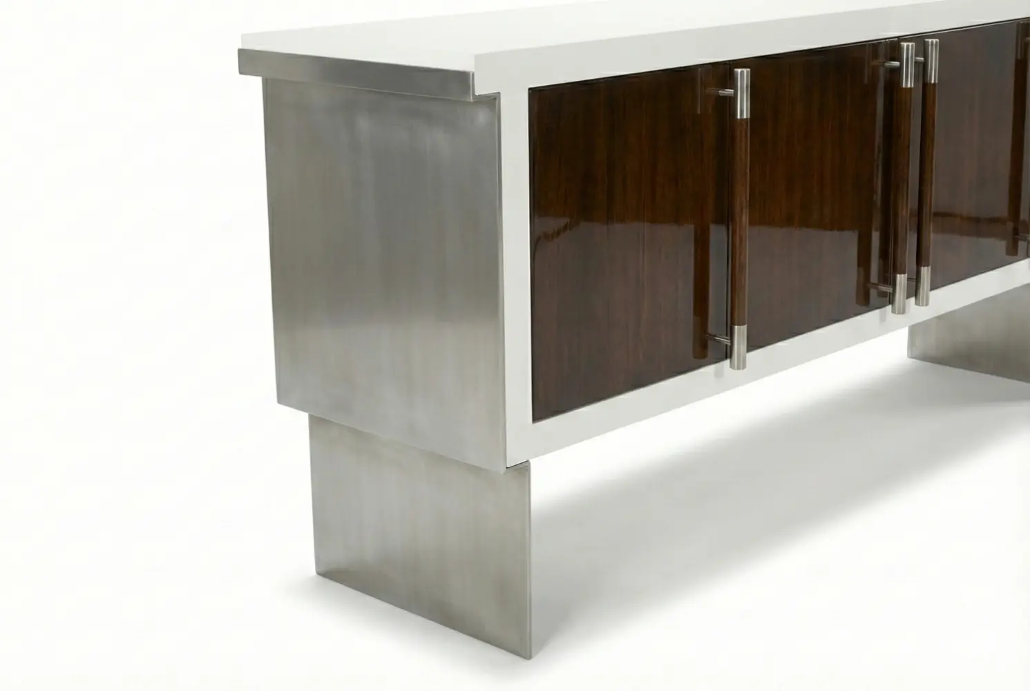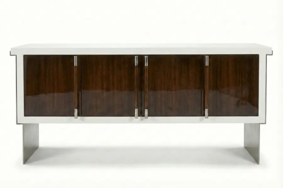Sleek metal hardware punctuates the silhouette, offering subtle contrast against the custom wood finishes. Fully customizable in both wood and metal options, the Branderberry adapts seamlessly to modern, transitional, or classic interiors. With thoughtful proportions and tailored detailing, it balances functional utility with sculptural elegance, making it a sophisticated focal point in living rooms, entryways, or dining spaces.