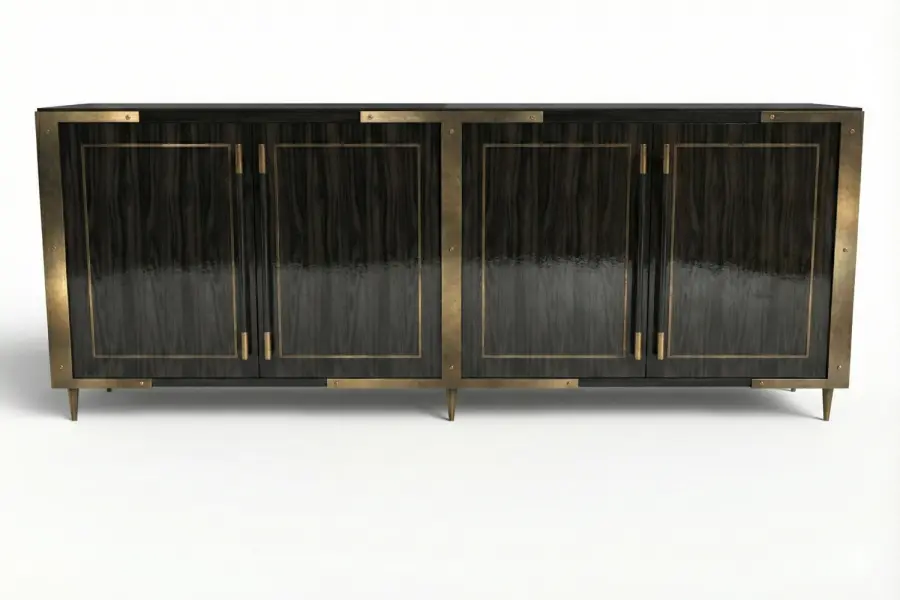 Accented with sleek metal finishes, this credenza is perfectly suited to modern or contemporary interiors. Fully customizable in wood species, finish, and metal detailing, it adapts to any design program while balancing sculptural form with everyday utility.