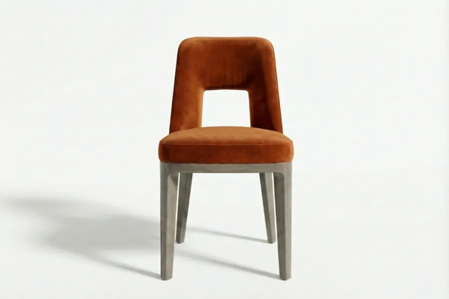 The Marcello Dining Chair blends sculptural modernity with exceptional comfort. Its signature cut-out “keyhole” backrest provides ergonomic support while creating visual intrigue, making it a striking addition to any dining space.