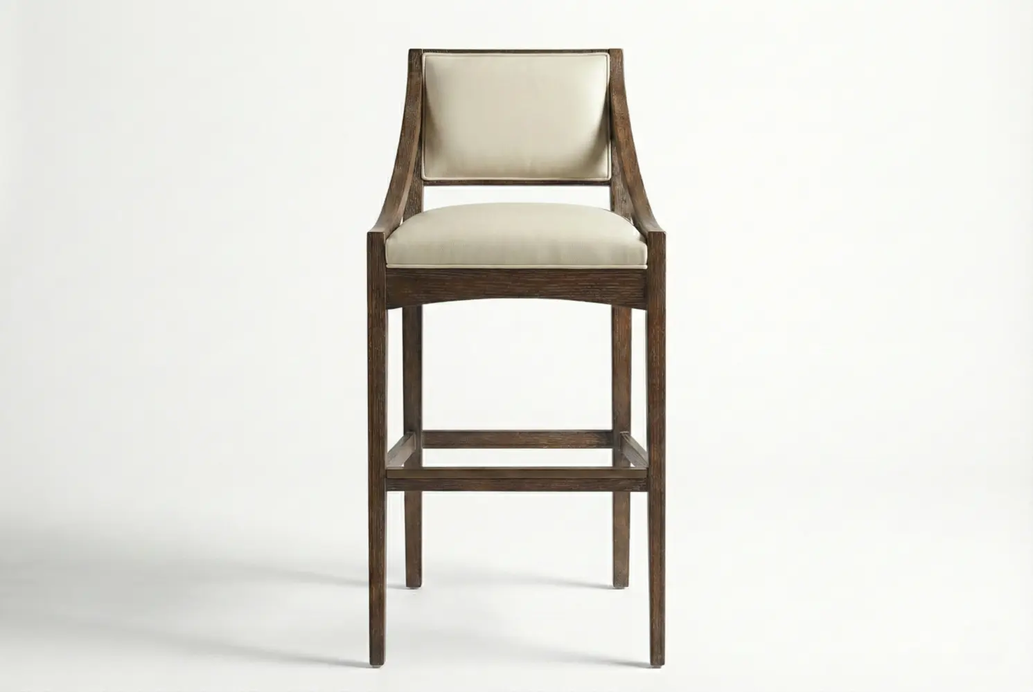 Offered in both counter and bar heights, this fully bespoke barstool can be tailored in dimensions, upholstery, wood species, and finishes, ensuring it integrates seamlessly into your entertaining space while reflecting your personal design direction.
