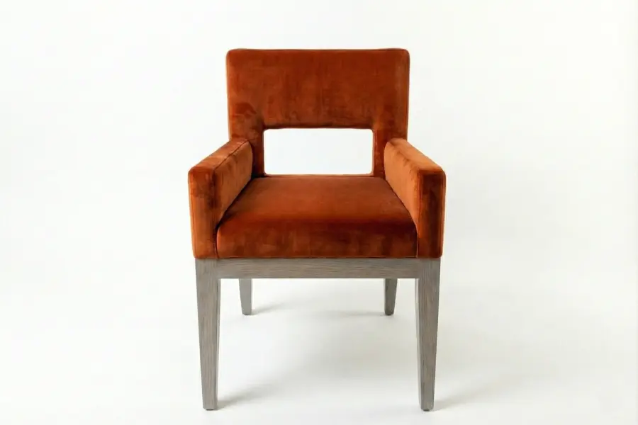 Defined by its clean silhouette and subtle back cutout detail, the Ross Chair delivers understated elegance with practical versatility. Solid walnut legs provide warmth and durability, while the streamlined form allows the chair to function beautifully as dining seating, a task chair, or an occasional armchair.