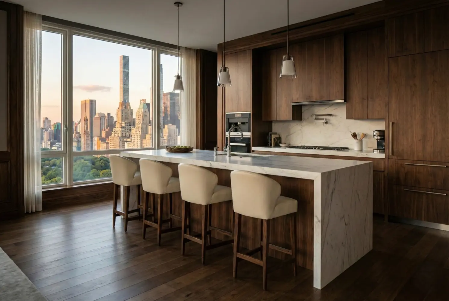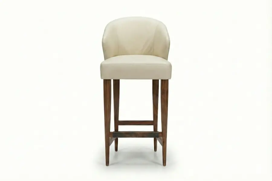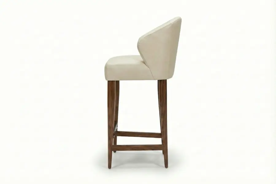 This fully bespoke barstool can be tailored in premium upholstery selections, custom wood finishes, and your choice of counter or bar height, ensuring it complements your space with precision and sophistication.