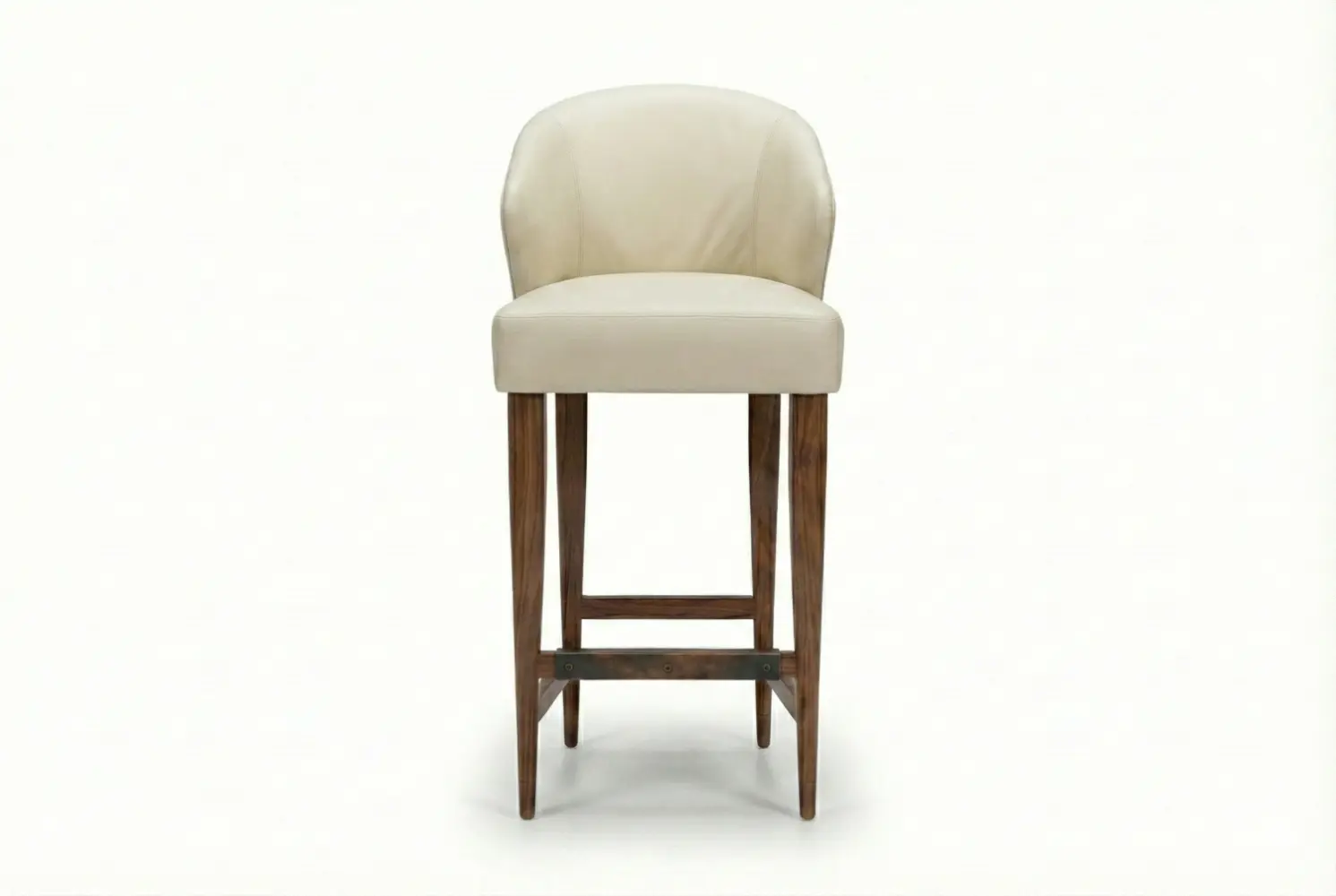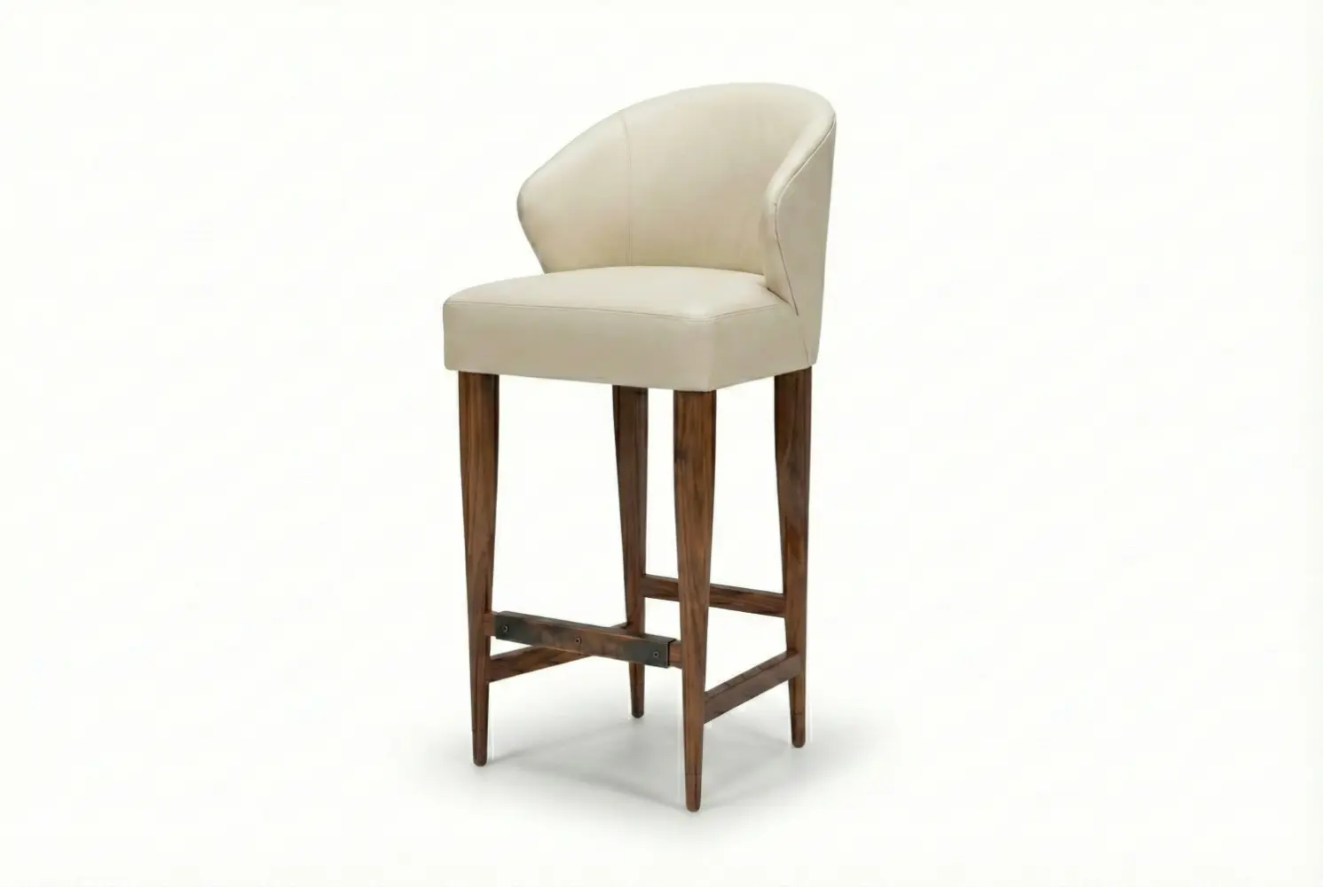 The Torino Barstool pairs Italian-inspired elegance with thoughtful functionality. Its gracefully curved, enveloping backrest and plush seat deliver ergonomic comfort, making it ideal for extended gatherings at kitchen counters or home bars. A tapered wooden base provides structural refinement, while the integrated metal kickplate adds both durability and a subtle architectural accent.