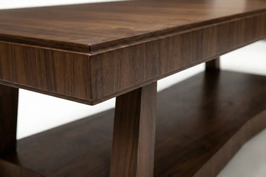 The Bennett Dining Table embodies the perfect symbiosis of elegance and sophistication, creating a striking focal point within any dining environment. Shown in solid walnut with a high-gloss finish, its refined surface enhances the richness of the wood grain while introducing a polished, contemporary presence. Generously proportioned, the table offers plentiful seating without sacrificing intimacy, allowing for effortless conversation among family and guests alike.