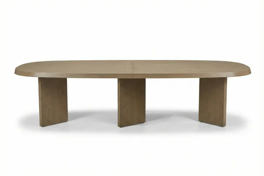 The Triad Extension Dining Table is a bespoke dining centerpiece that brings architectural balance and warm modernity to gathering spaces. Crafted in white oak, its expansive racetrack-boat silhouette incorporates a seamless extension mechanism designed for effortless entertaining.