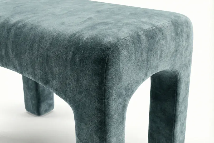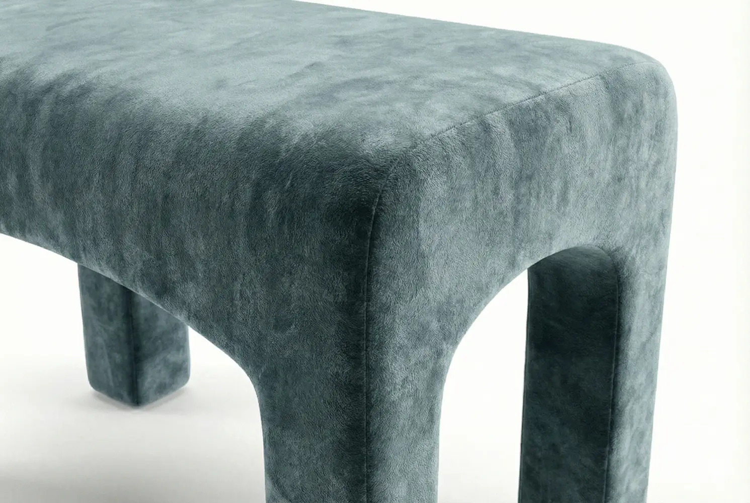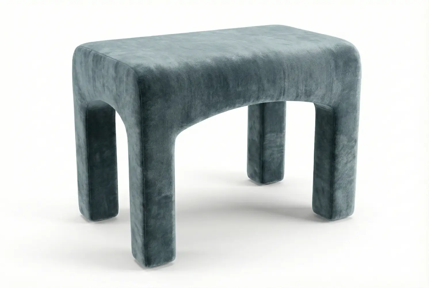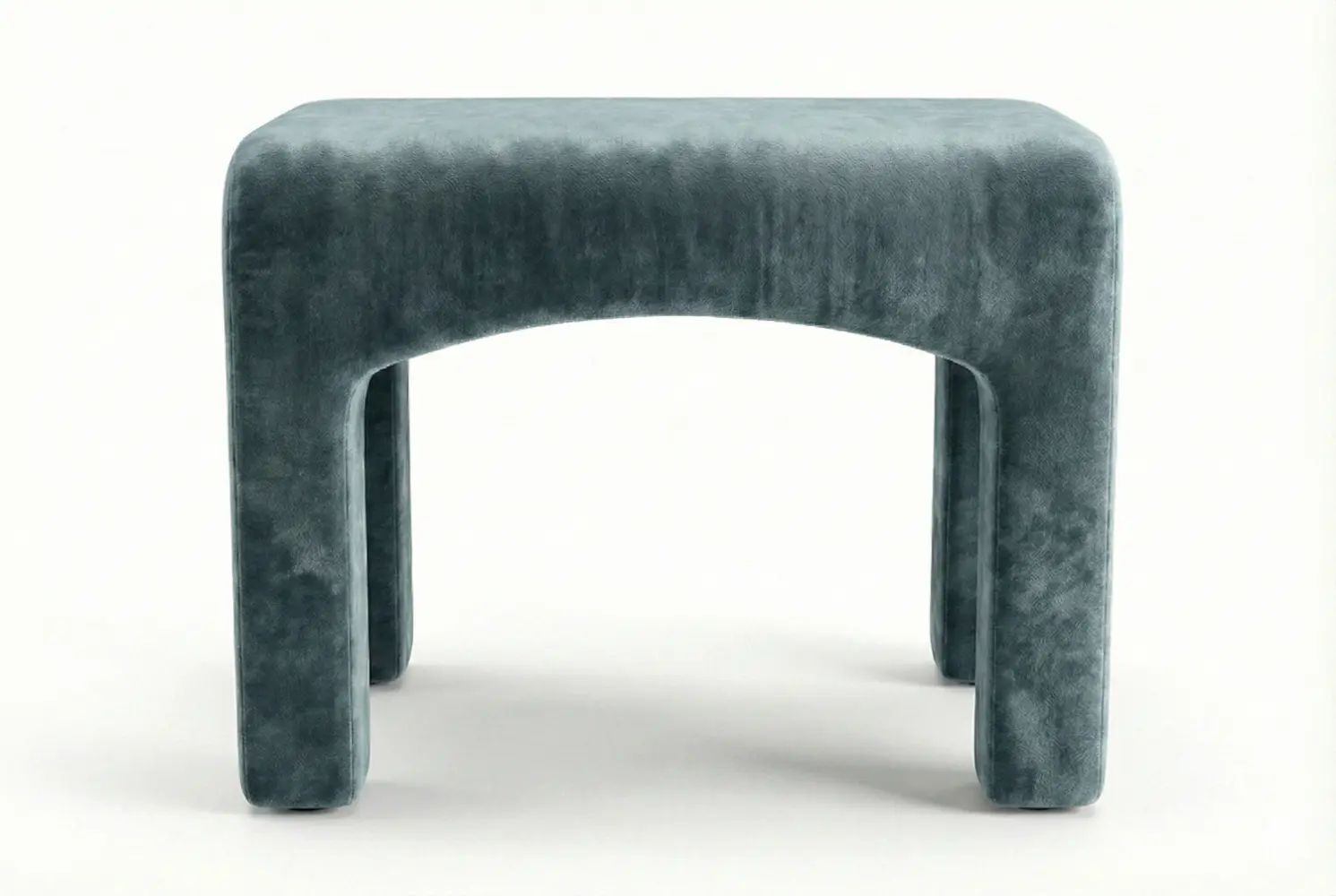 Minimalist sculpture and functional seating converge in the Arco Stool. Defined by its graceful arching silhouette and fully upholstered monolithic legs, the design introduces a bold architectural presence to dressing rooms, bedrooms, or contemporary living spaces. Its seamless form allows it to function beautifully as a vanity stool or versatile side seat, offering both visual impact and everyday practicality.