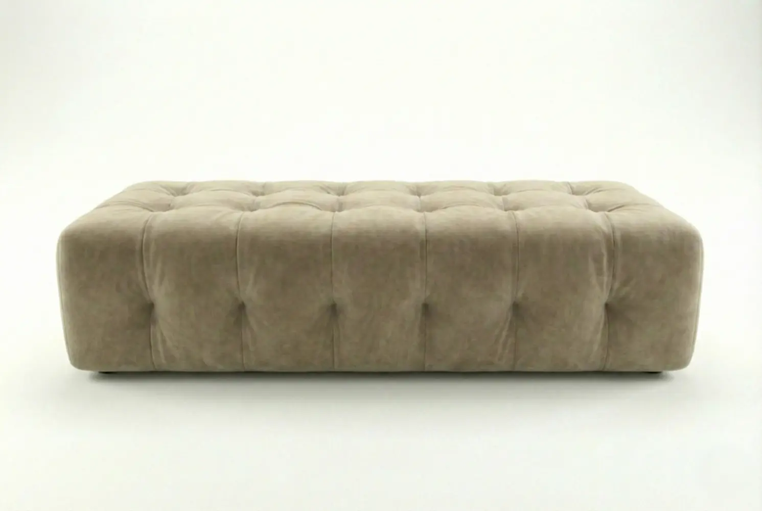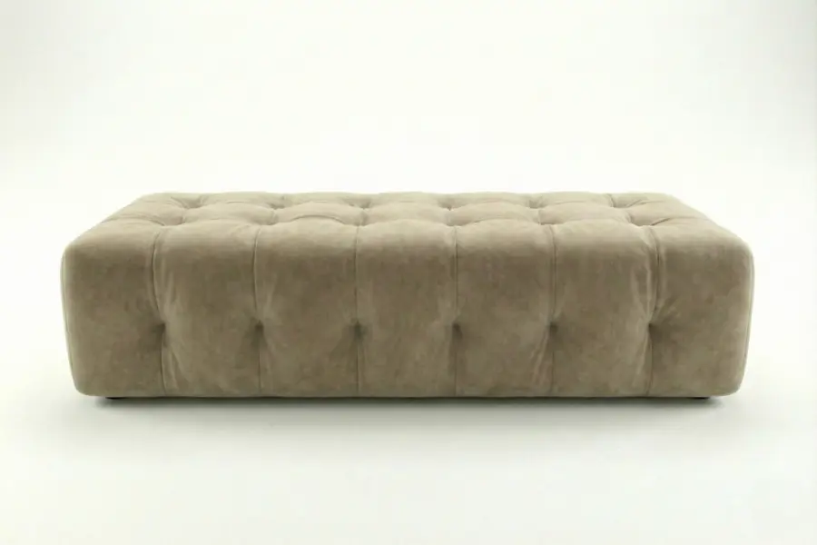 The Biscuit Bench extends the sculptural elegance of classic tufted design into a refined, elongated silhouette. Featuring seamless, deep button tufting throughout, the bench delivers geometric rhythm and tailored texture in equal measure. Its substantial form makes it an ideal anchor for the foot of a bed, a spacious entryway, or sophisticated seating arrangements where both presence and comfort are essential.