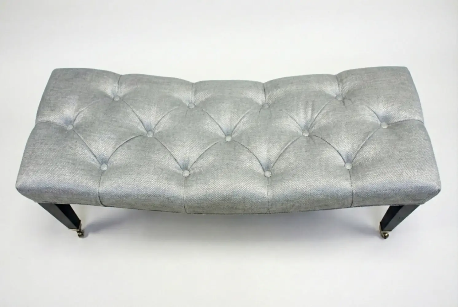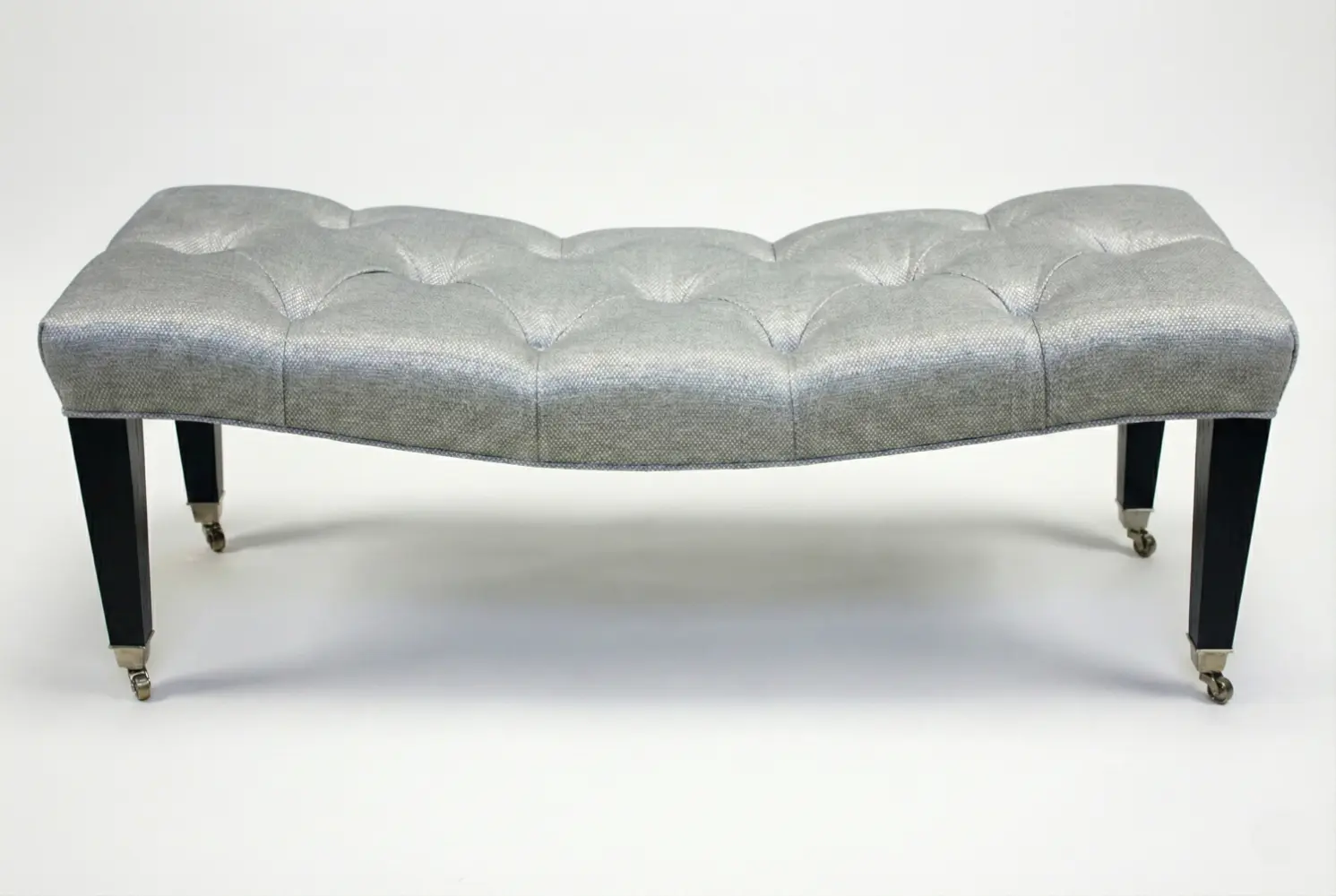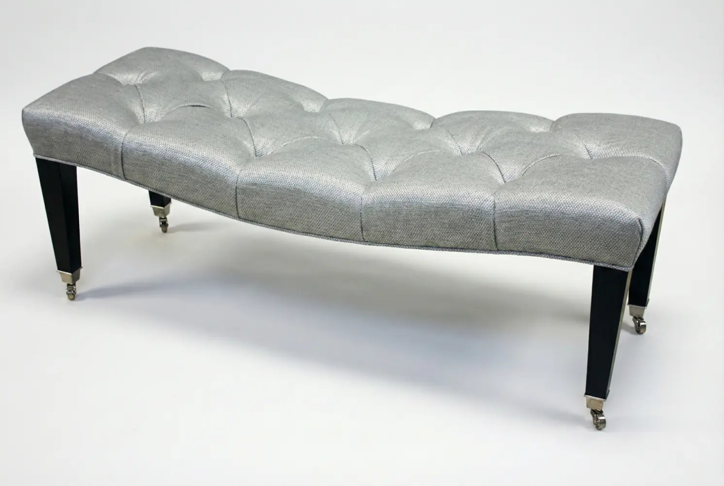 The Hillside Curved Bench creates a distinctive presence through its gracefully contoured silhouette and elegantly tufted seat. The sweeping form softens interior spaces while maintaining a refined architectural profile, making it ideal for entryways, bedrooms, dressing areas, or sophisticated living environments. Tailored wooden legs fitted with classic casters add both traditional character and practical mobility, enhancing its versatility as functional seating or a statement accent.
