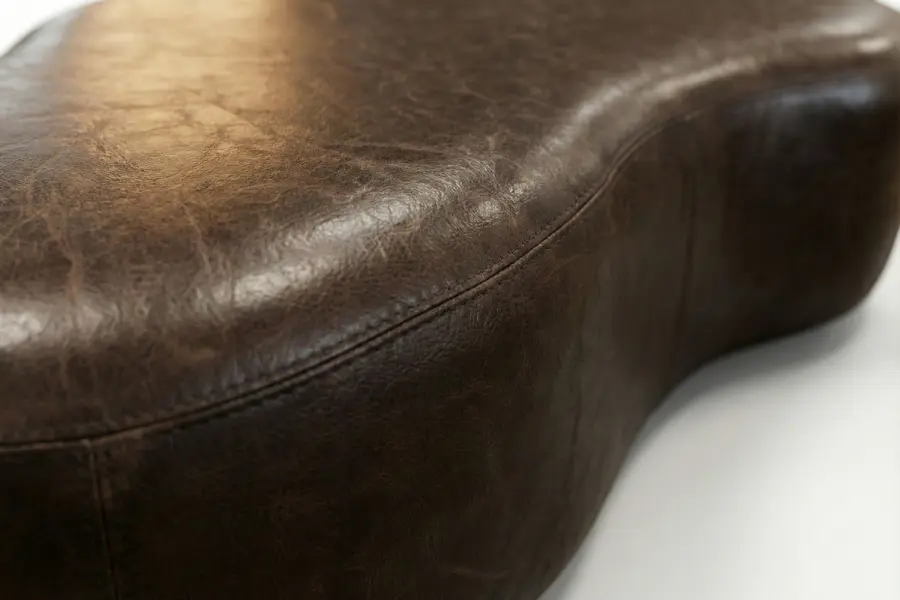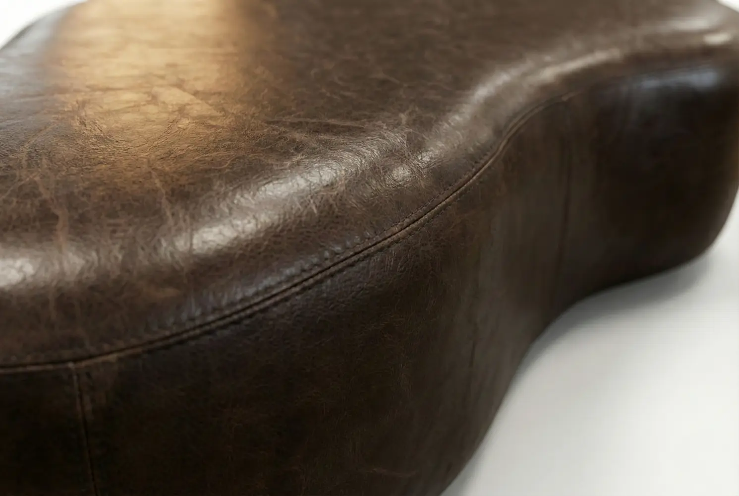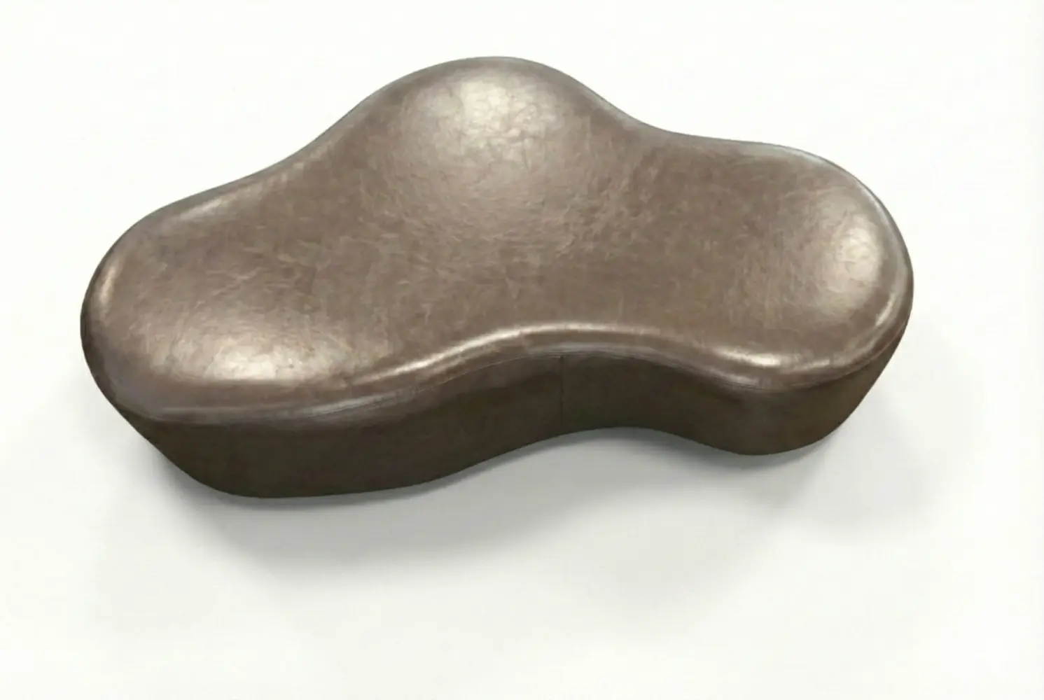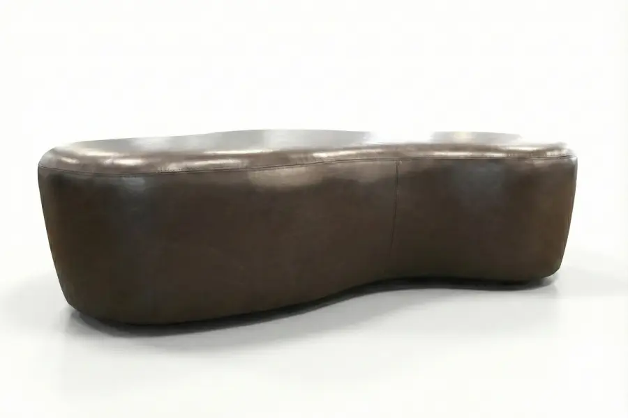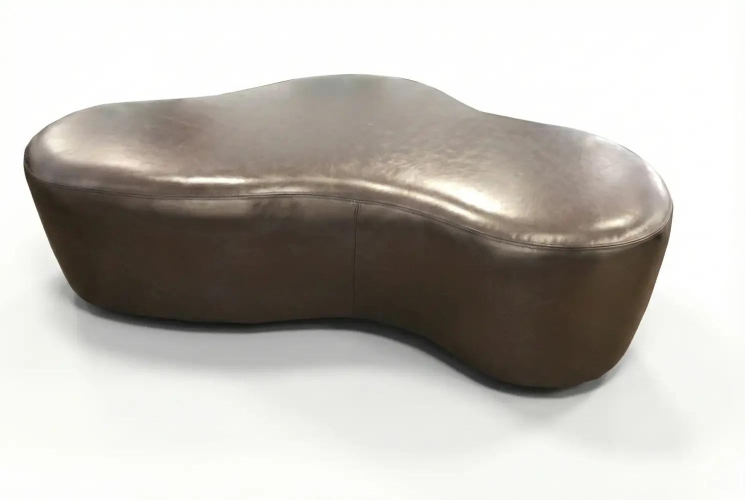 The Soho Ottoman introduces a fluid, sculptural presence to the room with its distinctive organic silhouette. Fully upholstered in smooth leather, its soft, amoeba-like form brings a sense of movement and modern sophistication to any living space while offering generous, comfortable seating.