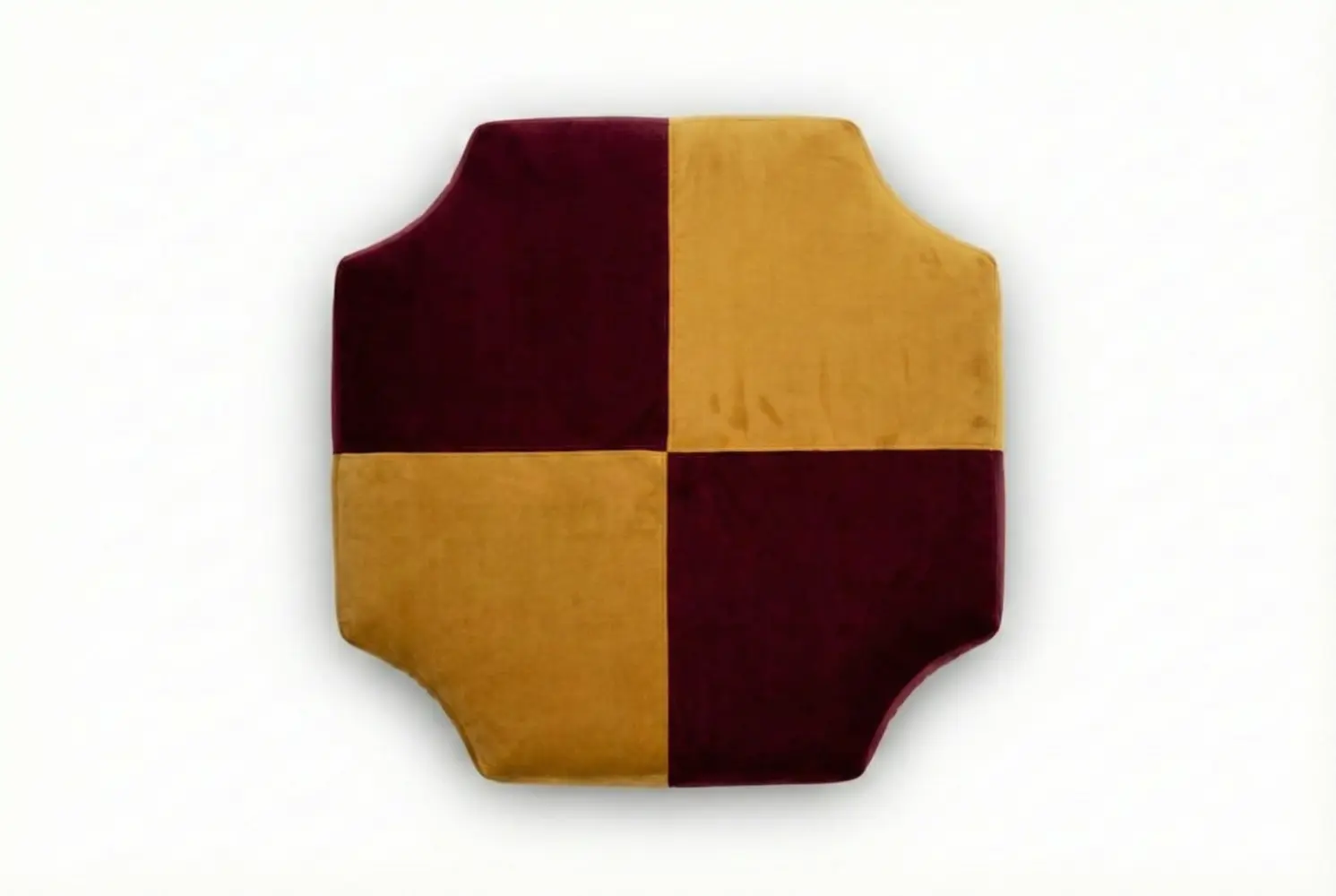The Trigoria Ottoman is a bold geometric statement piece defined by its distinctive star-inspired silhouette. Its sculptural form immediately draws the eye, transforming a functional ottoman into a dynamic focal point within the room. Shown here in a striking bicolor checkered velvet, the design introduces a playful yet sophisticated sense of pattern and depth.