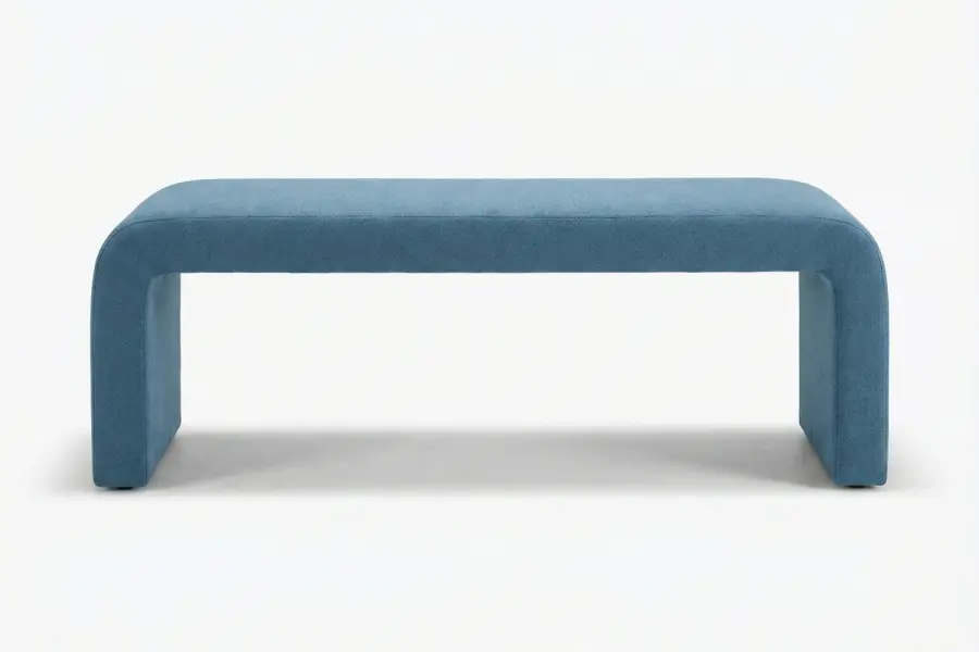 The Waterfall Bench is defined by its sleek, continuous silhouette, where elegantly rounded corners flow seamlessly from seat to floor. Its minimalist, fully upholstered design creates a refined and architectural presence, making it an ideal choice for contemporary interiors, entryways, bedrooms, or the foot of a bed. The smooth, uninterrupted form highlights proportion and craftsmanship while maintaining a clean, modern aesthetic.