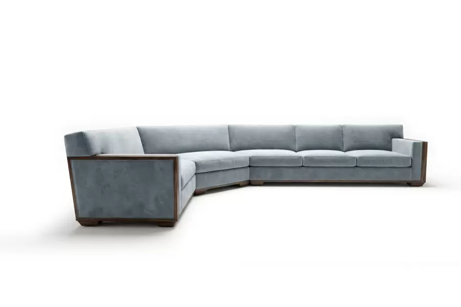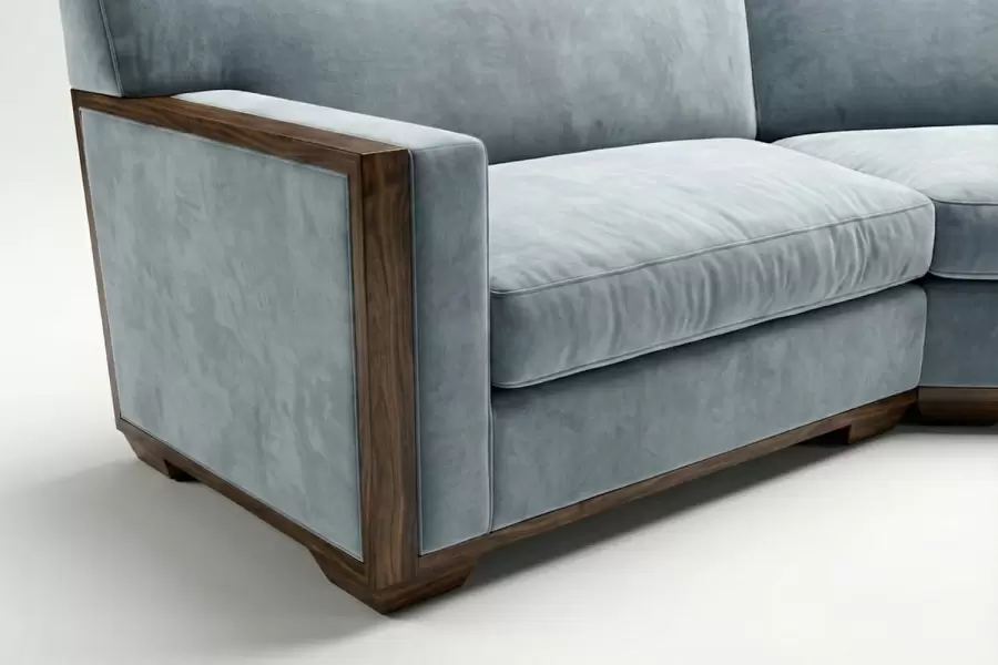 The Magenta Sectional showcases a masterfully crafted hardwood frame with precise architectural joinery. Choose bespoke walnut, oak, or ash finishes to highlight the frame’s craftsmanship. Deep-cushioned seating ensures luxurious comfort while the modular design offers endless layout possibilities.