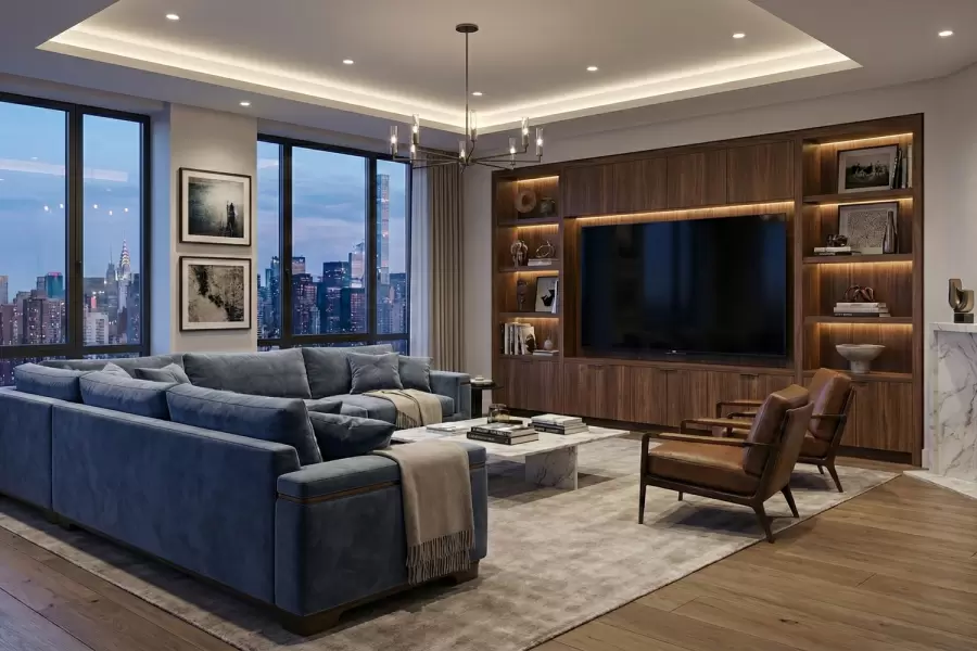This sectional combines structural precision with luxurious comfort, creating a high-end, tailored centerpiece for sophisticated residential or commercial interiors.