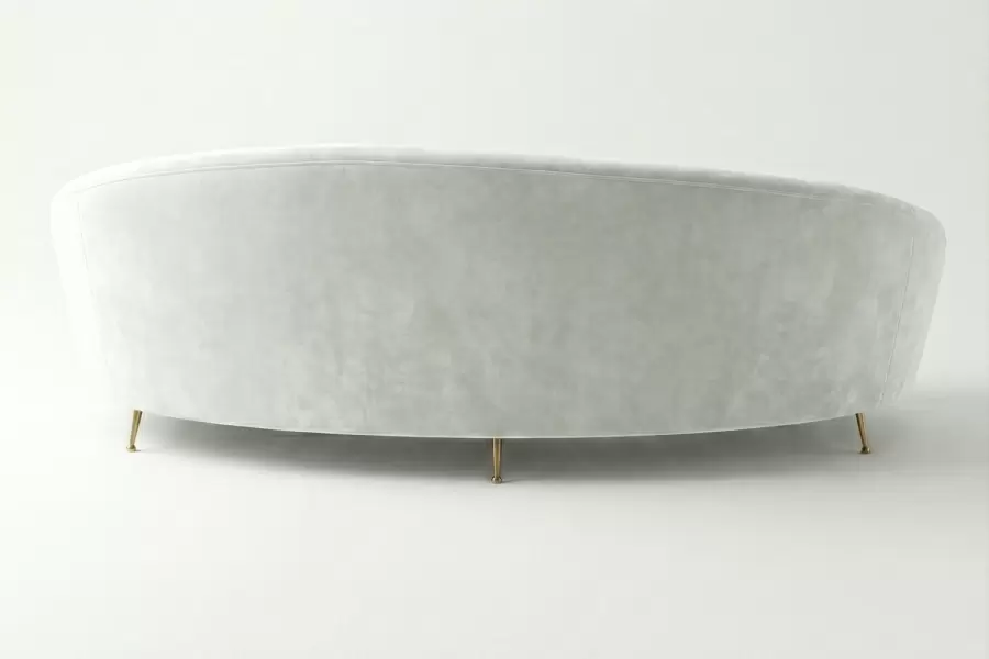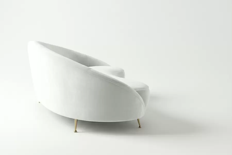 Introduce fluid elegance to your room with this organic, kidney-shaped silhouette. The Seamless, tight-seat design creates a clean, sculptural profile that encourages flow within open spaces. Elevated by slender, tapered brass legs, its floating appearance offers a light, airy presence while providing a sophisticated, modern focal point. Leg metal color, dimensions and all details can be specified.