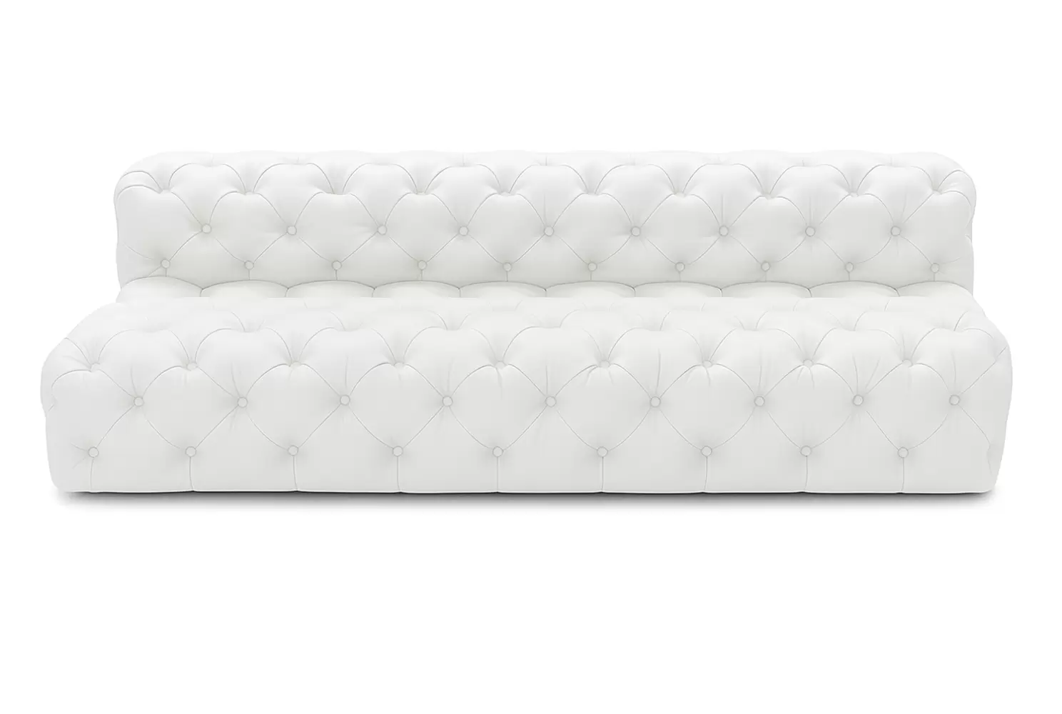 Designed with sophistication in mind. This armless upholstered sofa explores modernism with its bold diamond tufting and rounded edges.