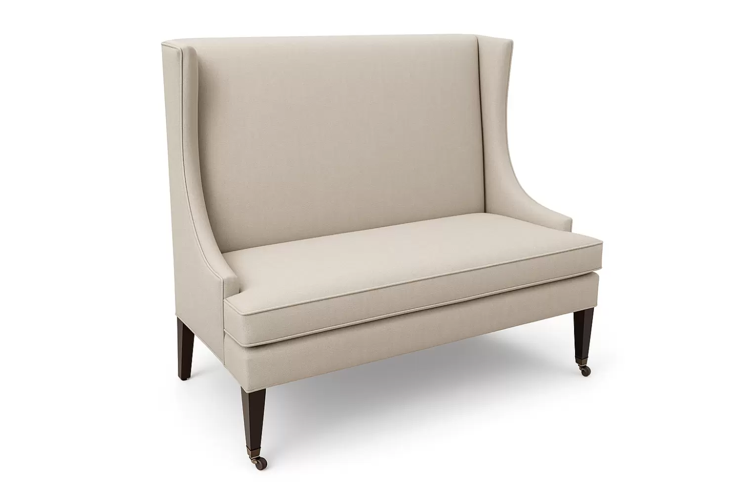A subtle nod to modern contemporary design. The Gallatin Loveseat features an elongated back, thin gentle sloping arms and square upholstered cushion that will become a focal point to any room. All design elements are custom made.