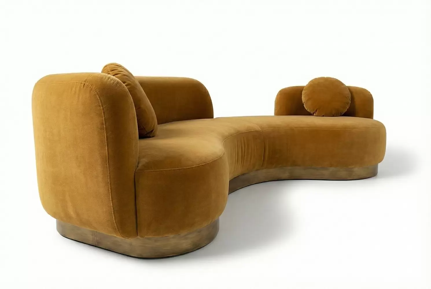 Defining fluid elegance, The Meander feature a sculptural, organic silhouette. The continuous plinth base is fully customizable, available in natural wood or various metals beyond brass. Tailor the size and curvature to your exact specifications, creating a bespoke centerpiece that perfectly flows with your unique space.